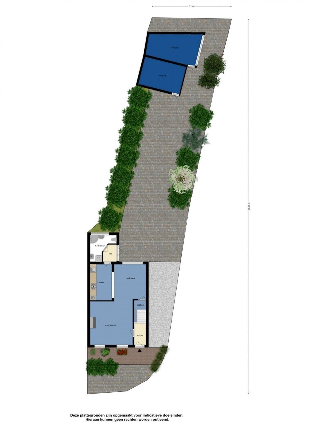 De woning is gelegen op een perceel van ca. 268m2 en beschikt daardoor over een diepe achtertuin van wel ca. 23m lang welke is gelegen op het noordoosten. In de achtertuin vindt je houten berging, een eigen achterom en een eigen garage met elektrische roldeur.