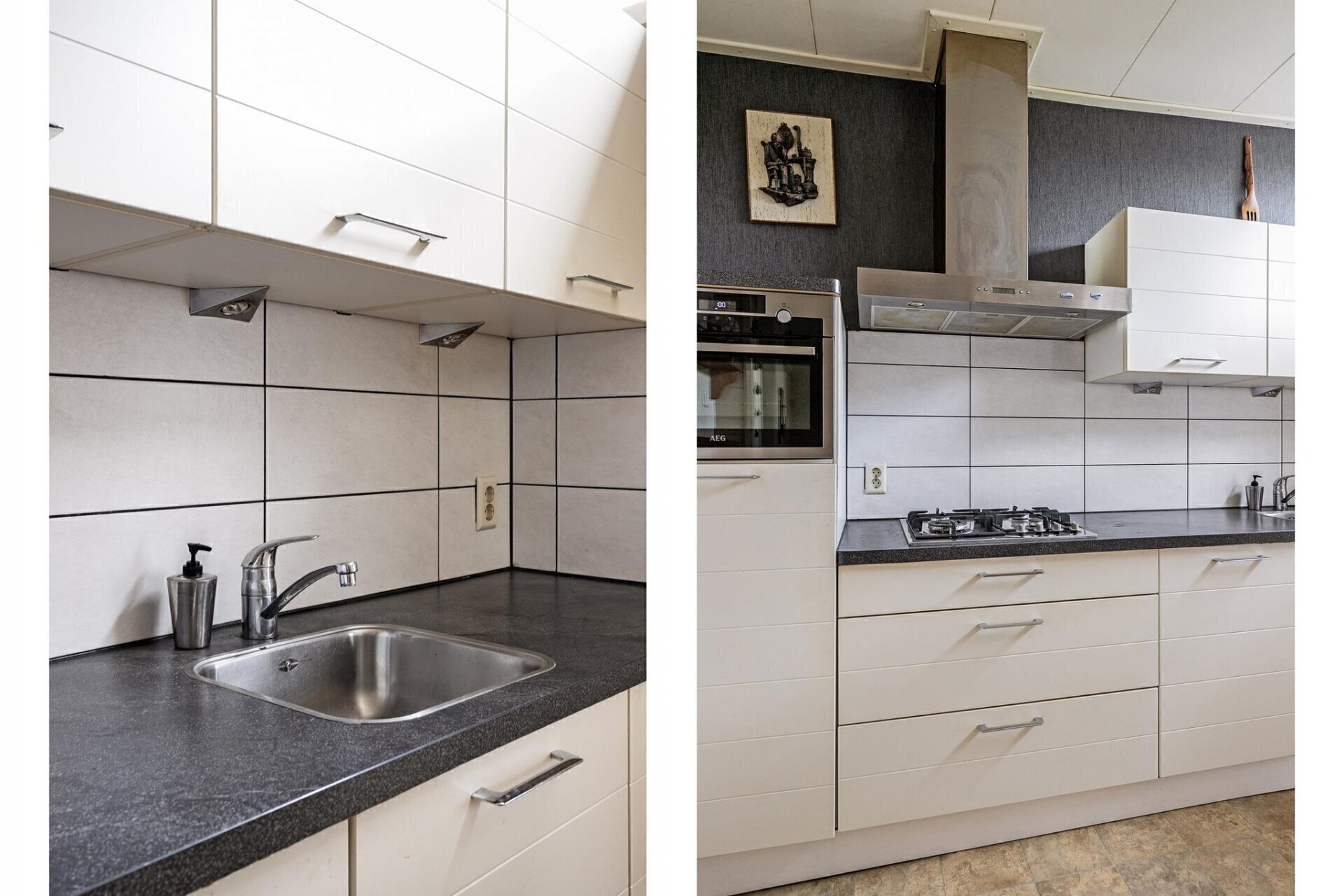 Entree met toegang tot de woonkamer en trap opgang tot de bovengelegen verdieping. Vanuit de hal kom je terecht in de woonkamer van ca. 17m2 welke is voorzien van een sfeervolle sierhaard en grote raampartijen die voor veel lichtinval zorgen. Aan de achterzijde van de living vindt je de eetkamer en de open keuken. Deze open keuken is uitgevoerd met crèmekleurige kastdeuren en beschikt over een combi magnetron, koelkast, 4-pits gaskookplaat, RVS afzuigkap, vaatwasser en RvS spoelbak. Vanuit hier heeft u toegang tot de uitbouw met daarin de badkamer. Deze badkamer is voorzien van douchecabine, staand closet, wastafel, wasmachine aansluiting en cv opstelling. (Intergas 2010.)