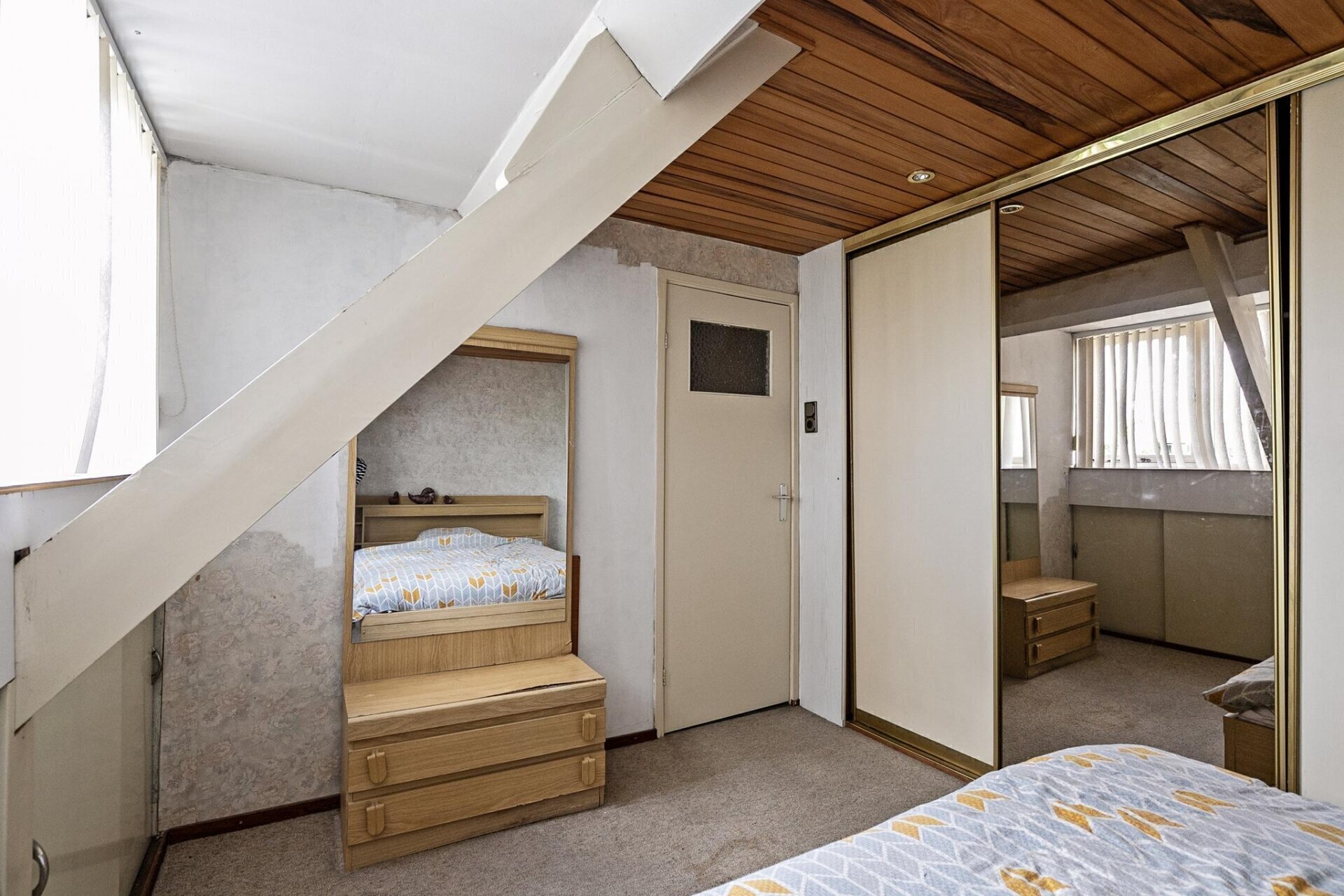 Middel de vaste trap kom je terecht om de overloop van de eerste verdieping. Hier bevinden zich twee vaste kasten en de toegang tot de bergzolder middels vlizotrap. Dan heb je vanuit de overloop toegang tot drie grote slaapkamers. Aan de voorzijde van de woning vindt je de eerste twee slaapkamers. Beide kamers beschikken over een grootte van 9m2 en 8m2. Aan de achterzijde bevindt zich de derde slaapkamer met een grootte van respectievelijk 12m2. Deze slaapkamer is voorzien van een vaste kastenwand en dakkapel die voor veel lichtinval zorgt.