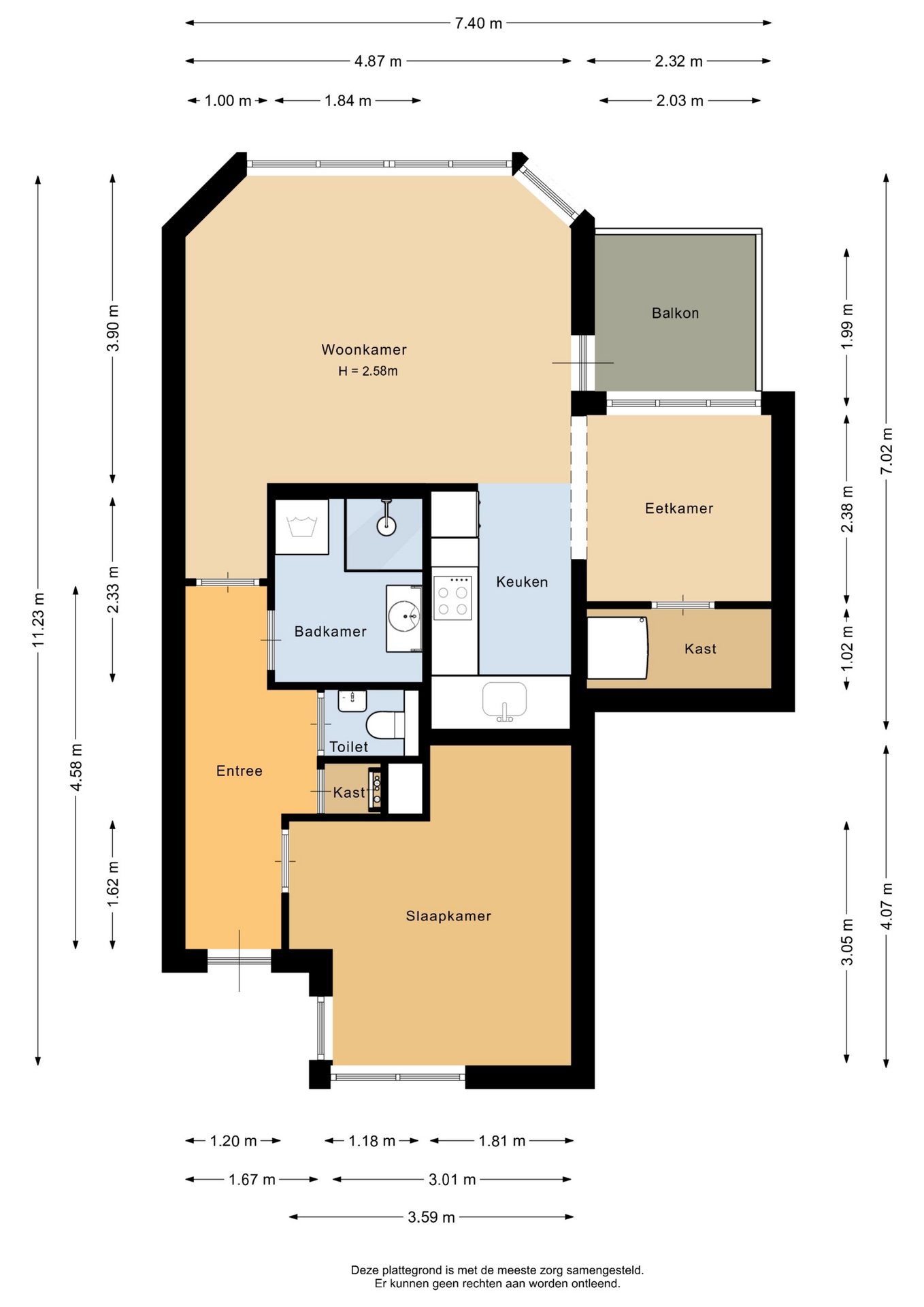 “Deze informatie is door ons met de nodige zorgvuldigheid samengesteld. Onzerzijds wordt echter geen enkele aansprakelijkheid aanvaard voor enige onvolledigheid, onjuistheid of anderszins, dan wel de gevolgen daarvan. Alle opgegeven maten en oppervlakten zijn indicatief.”
