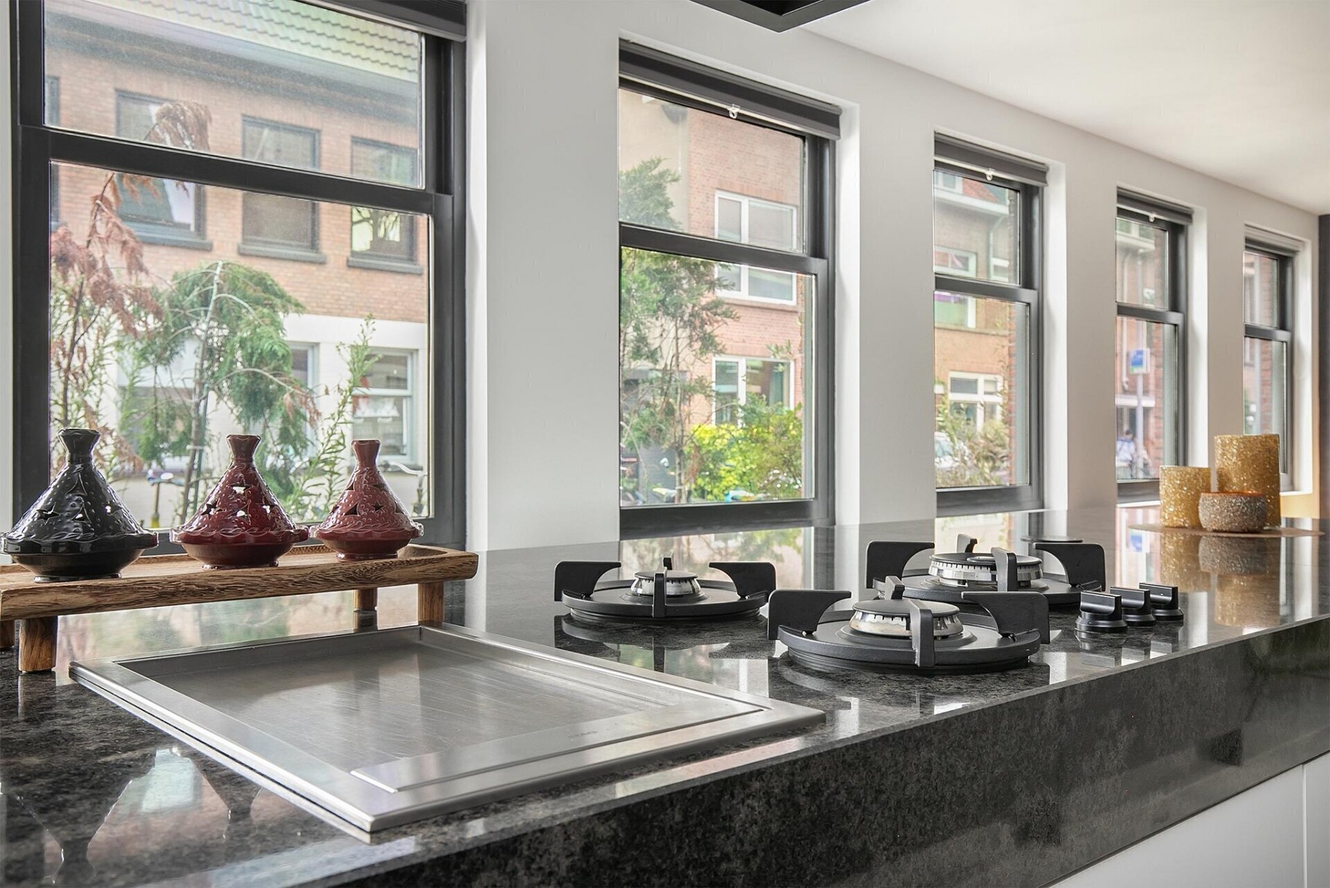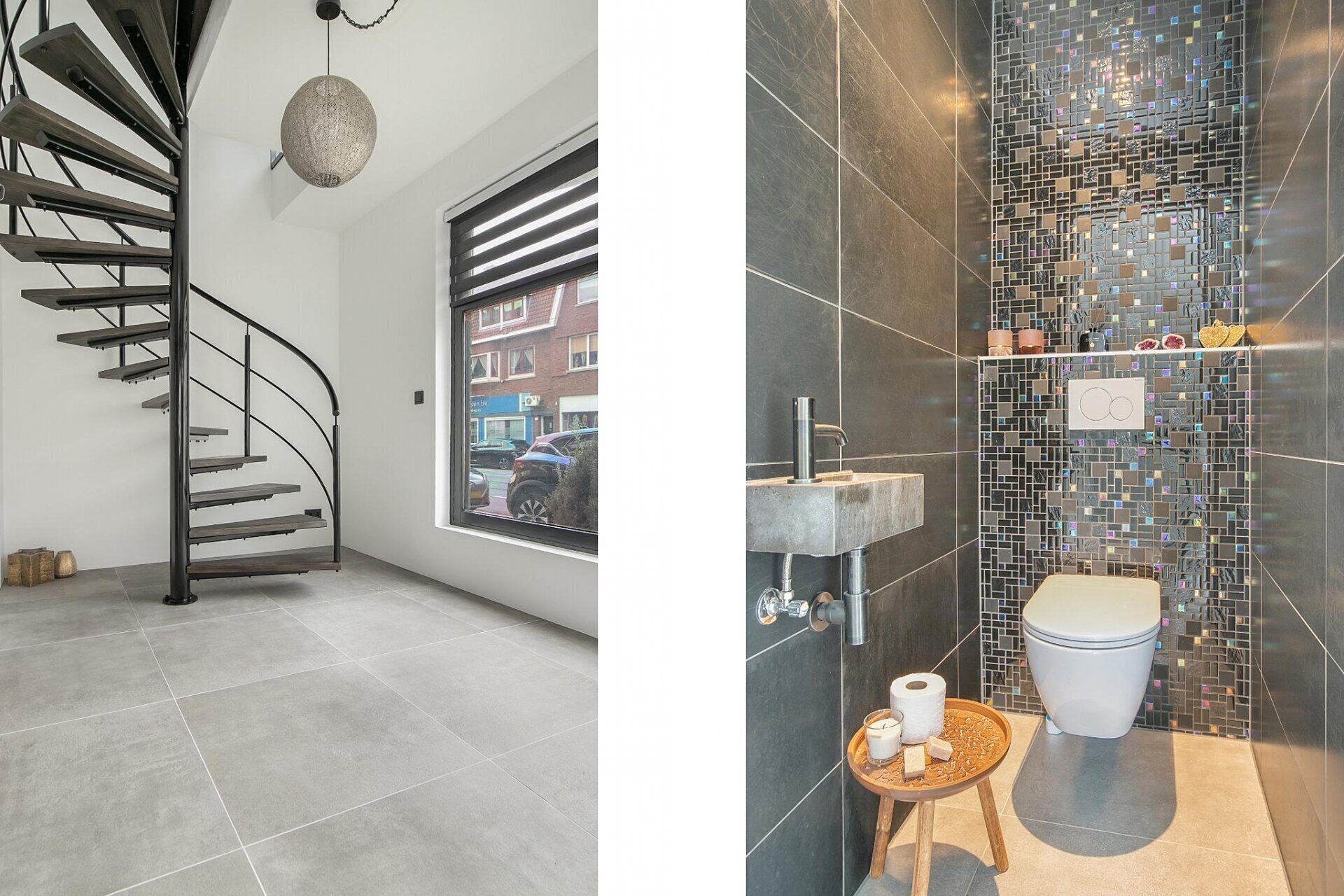 - Moderne tegelvloer op de begane grond en laminaatvloer op de 1e en 2e verdieping
