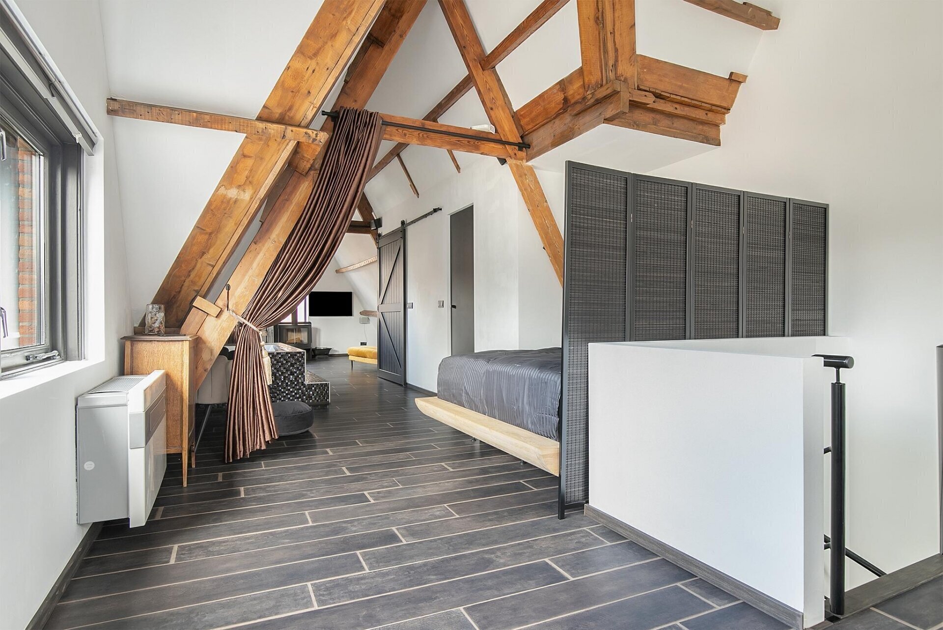 - Hout gestookte haard op de tweede verdieping