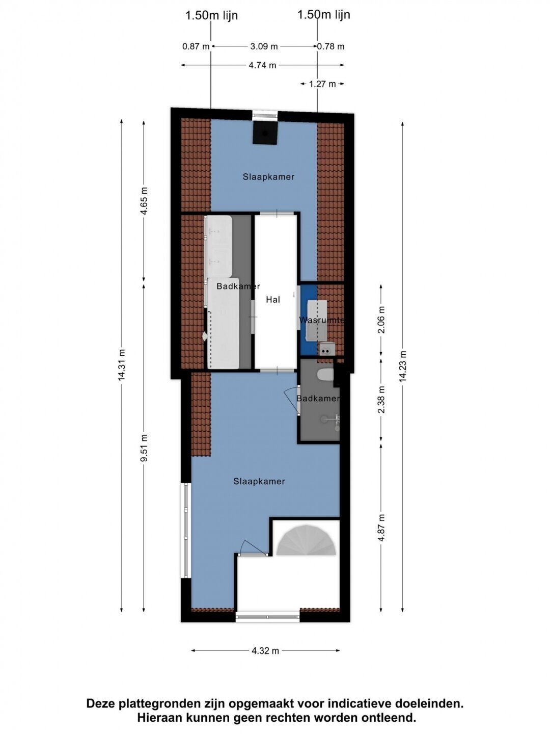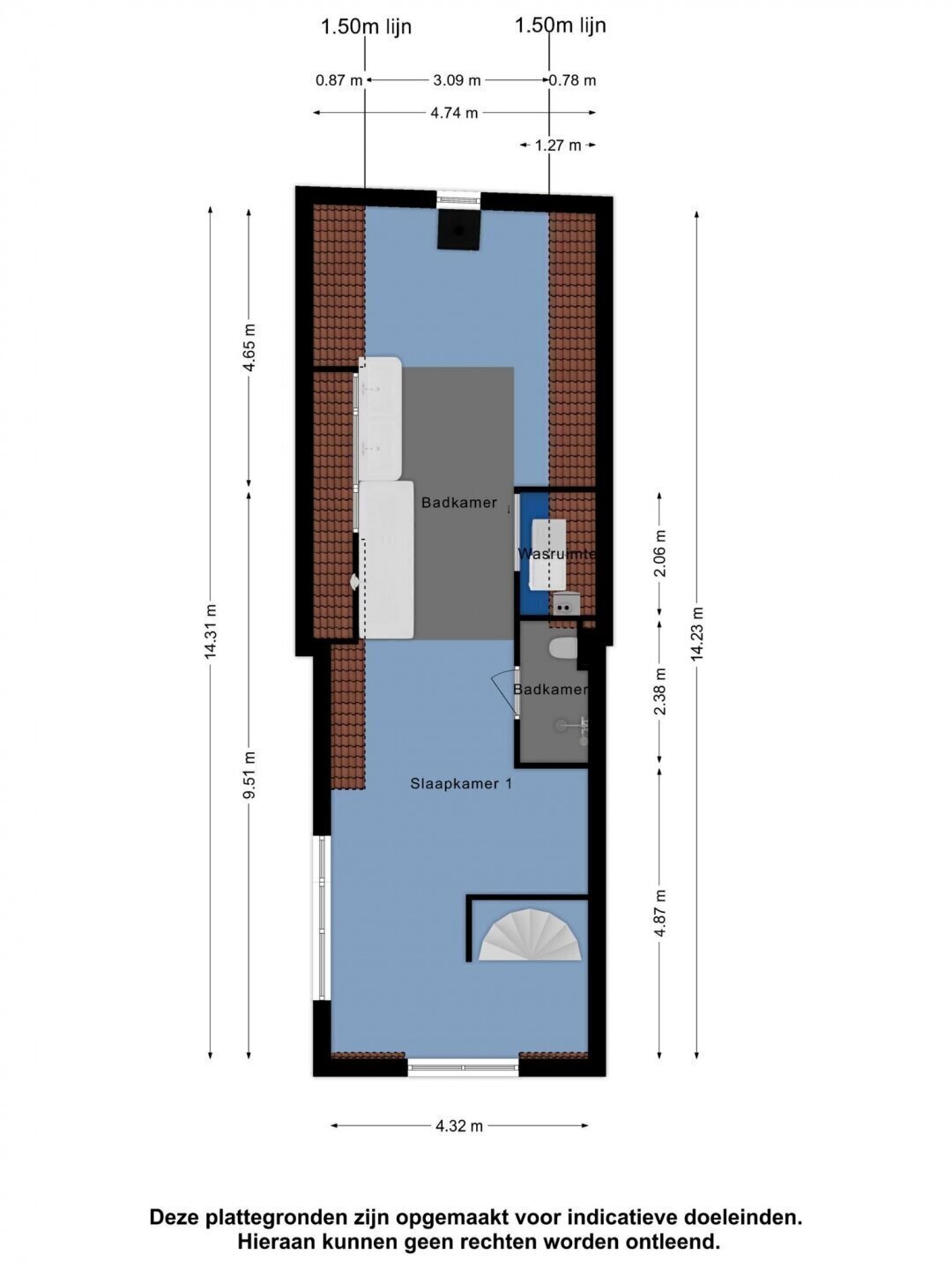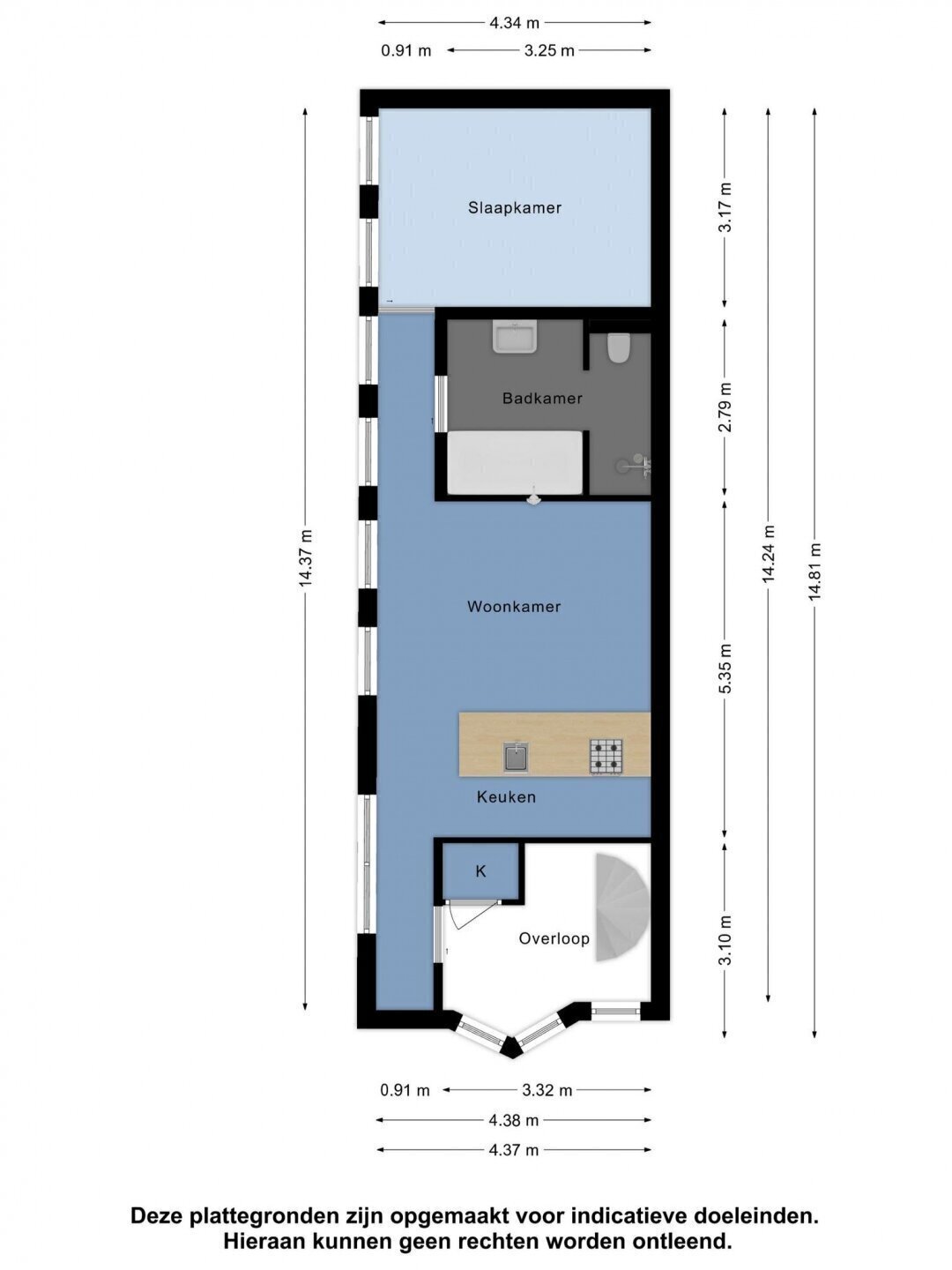 “Deze informatie is door ons met de nodige zorgvuldigheid samengesteld. Onzerzijds wordt echter geen enkele aansprakelijkheid aanvaard voor enige onvolledigheid, onjuistheid of anderszins, dan wel de gevolgen daarvan. Alle opgegeven maten en oppervlakten zijn indicatief.”