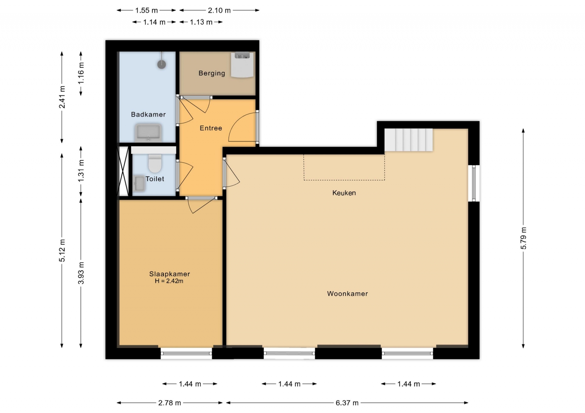 - Volledig voorzien van dubbel glas