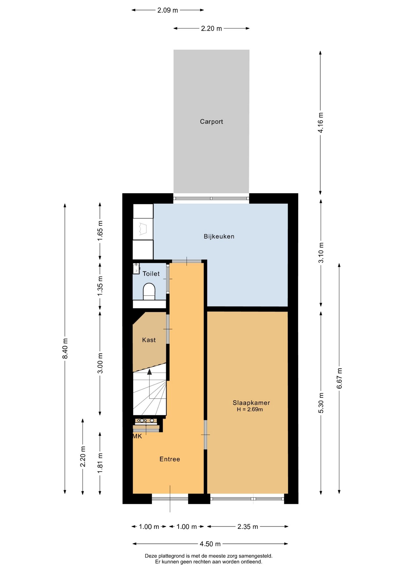 SLAAPKAMER EN BIJKEUKEN/BERGING BENEDEN