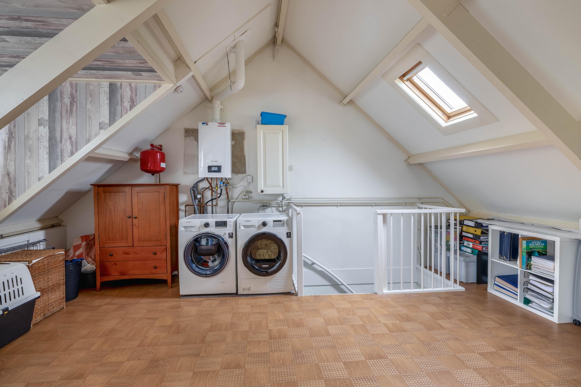 Dit huis biedt volop ruimte voor een groeiend gezin of thuiswerkers. Op de eerste verdieping bevinden zich drie slaapkamers, waarvan één ideaal als master bedroom en twee geschikt als kinder-, logeer- of werkkamer. De ruime, vernieuwde badkamer, die aanvoelt als een privé-spa, is voorzien van een inloopdouche, ligbad, breed wastafelmeubel, strak tegelwerk en zelfs een ingebouwde tv; een heerlijke plek om tot rust te komen. De zolderverdieping is ideaal als vierde slaapkamer. De aanwezige dakkapel zorgt voor extra licht en ruimte.