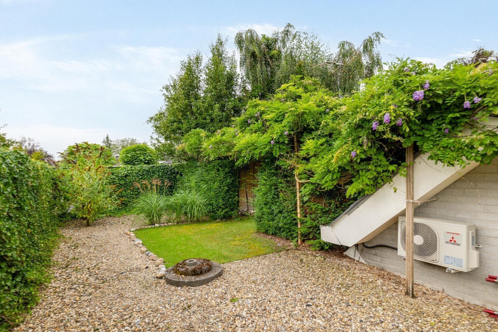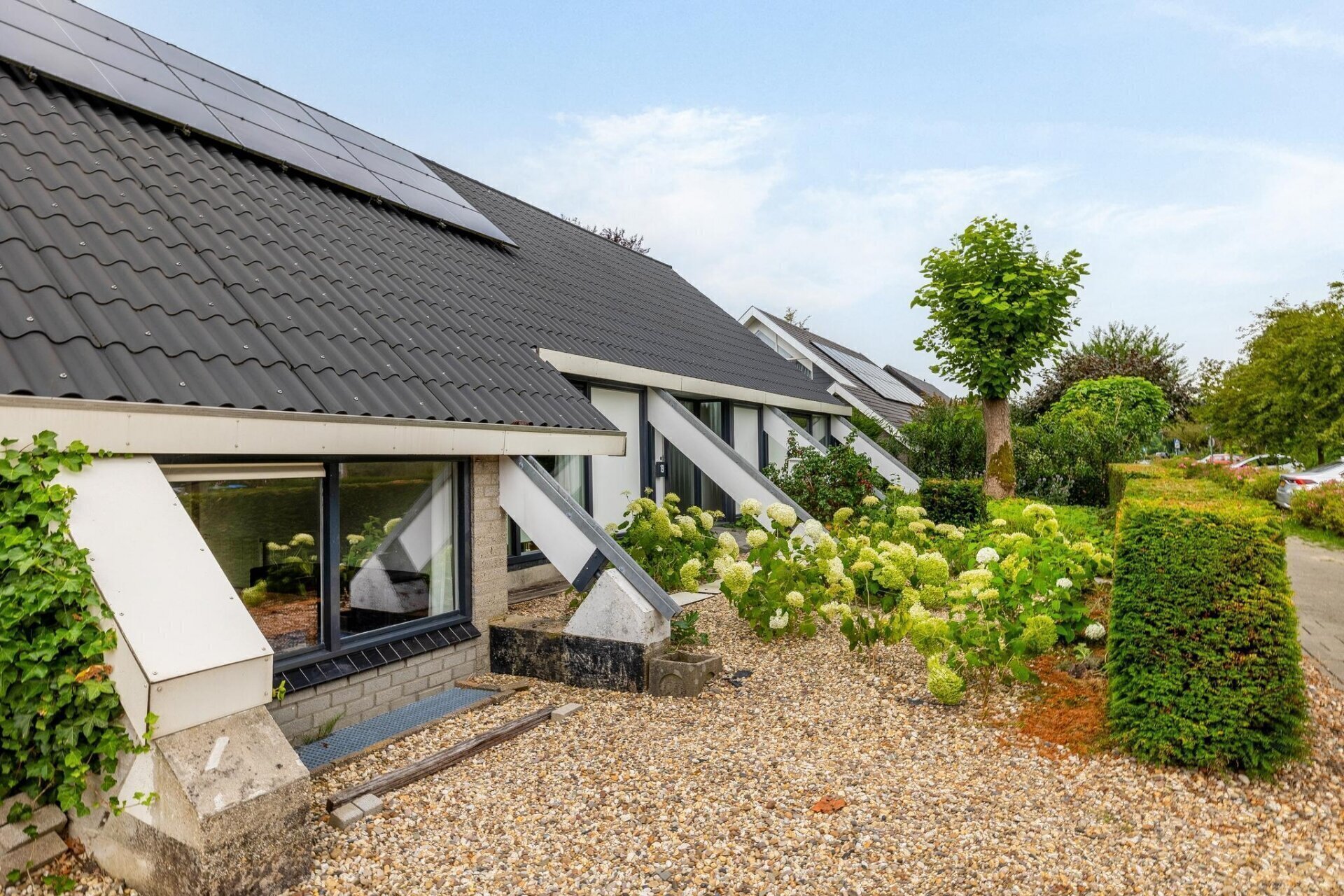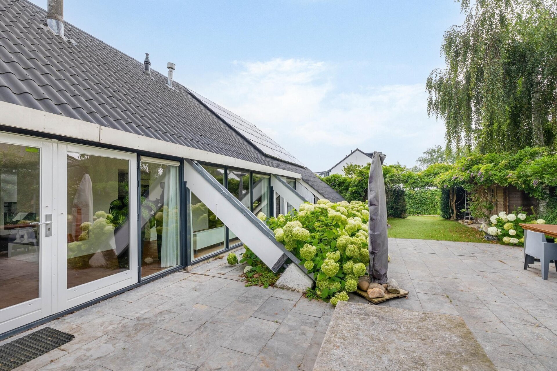 De fraai aangelegde achtertuin van 23 meter breed biedt volop mogelijkheden voor sfeervolle zithoeken om gezellig met vrienden en familie buiten te genieten. Een houten overkapping biedt een beschutte plek om van het buitenleven te genieten. Aan de achterzijde is een ruime vrijstaande houten berging geschikt voor het opbergen van fietsen of tuingereedschap. Aangebouwd aan de woning bevindt zich een derde stenen berging.