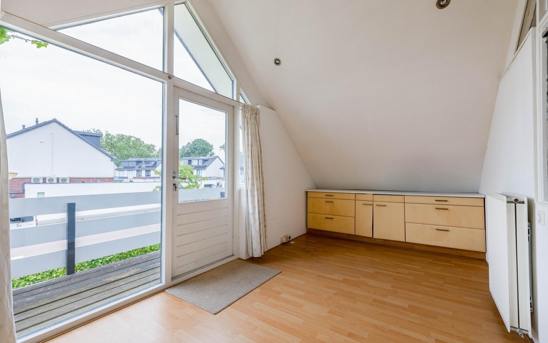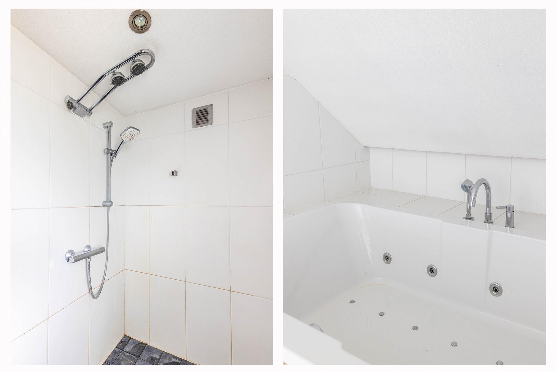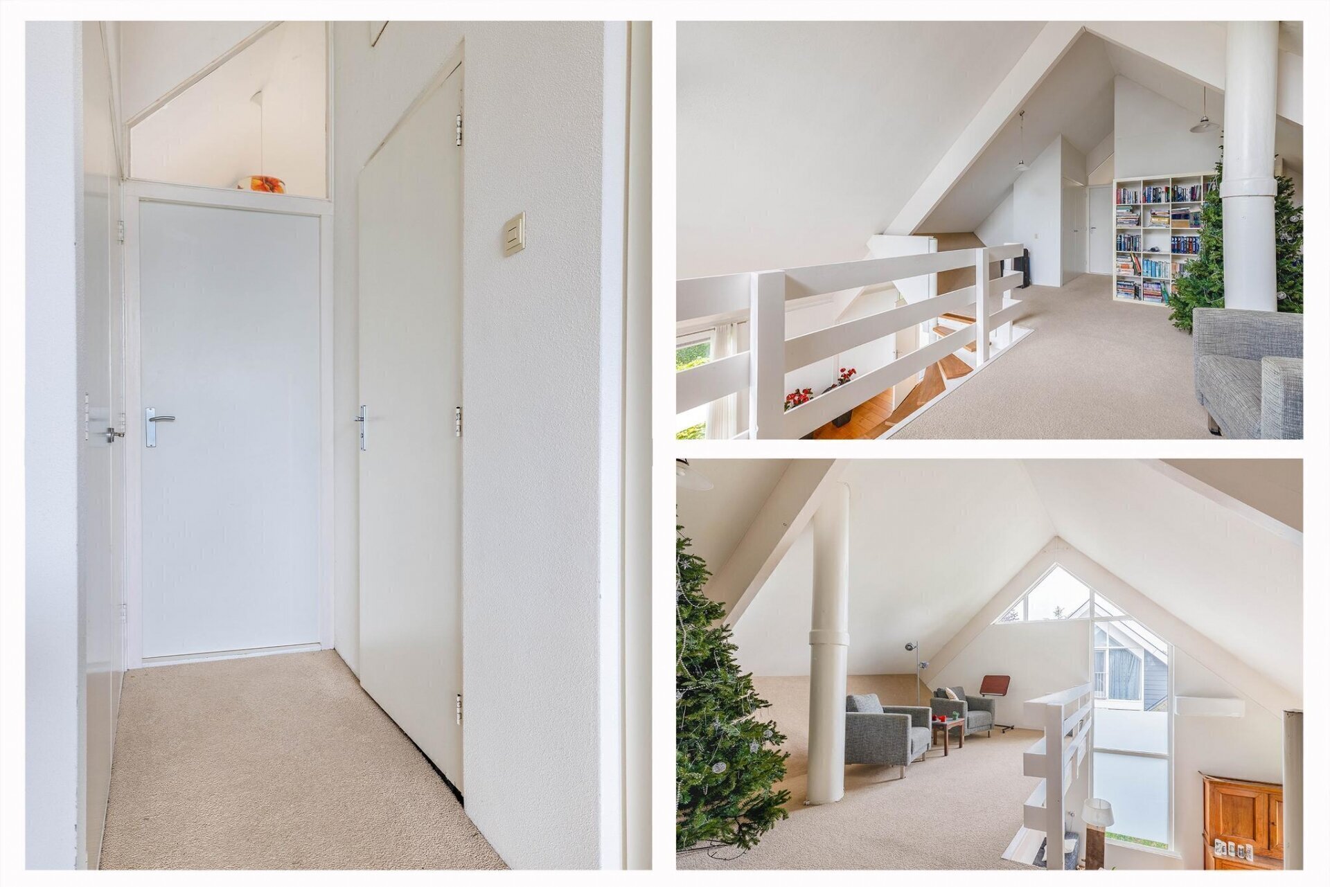 De sfeervolle vide biedt een gezellige zithoek op de eerste verdieping met veel lichtinval en een verbinding met de woonkamer. De ruime overloop biedt mogelijkheden voor een zithoek, hobbyruimte of extra slaapkamer. De overloop geeft toegang tot twee vaste bergkasten en een tweede badkamer met inloopdouche, toilet en wastafel. Vanuit de overloop bereikt u een ruime slaapkamer en een tweede slaapkamer die toegang biedt tot een ruim balkon.