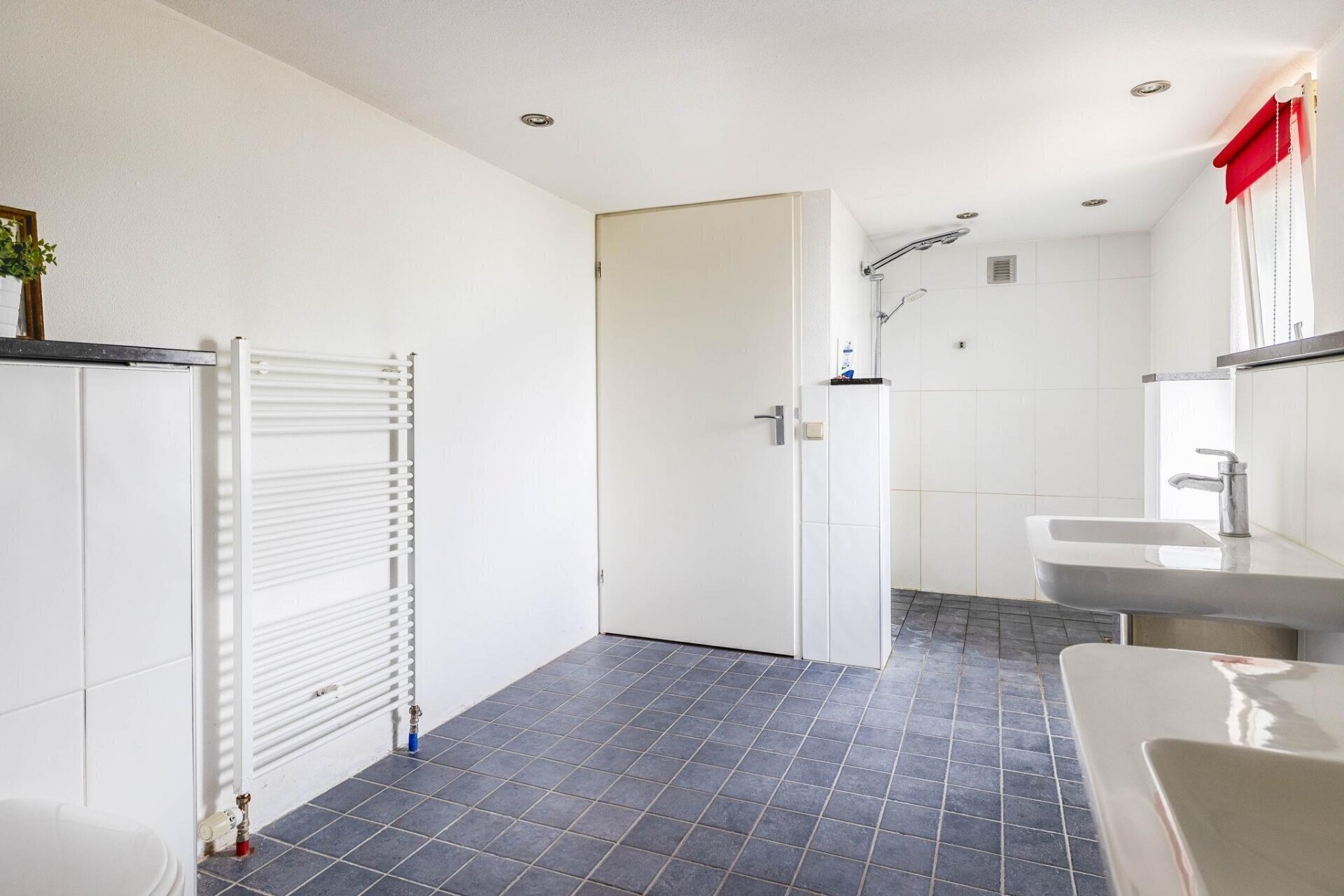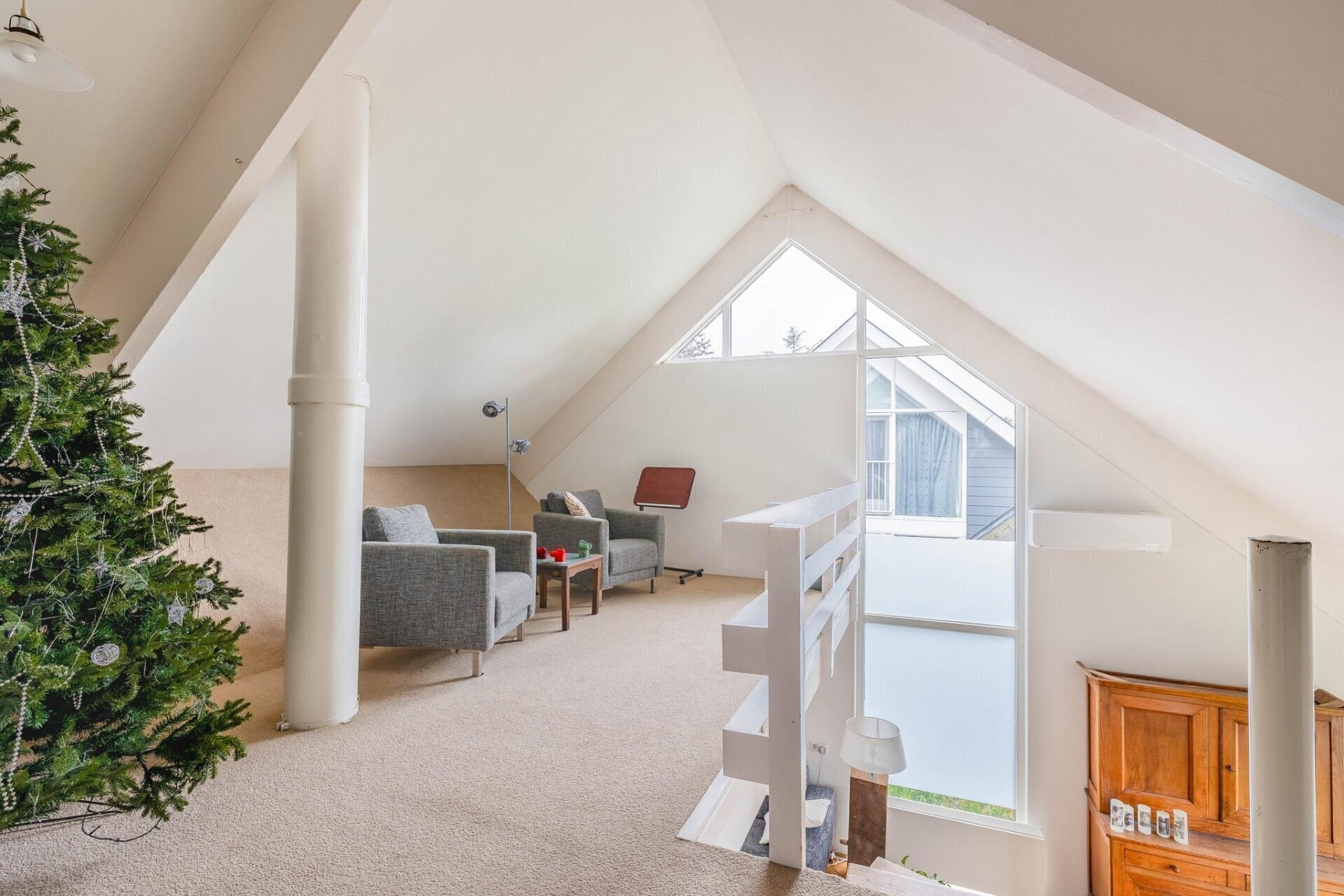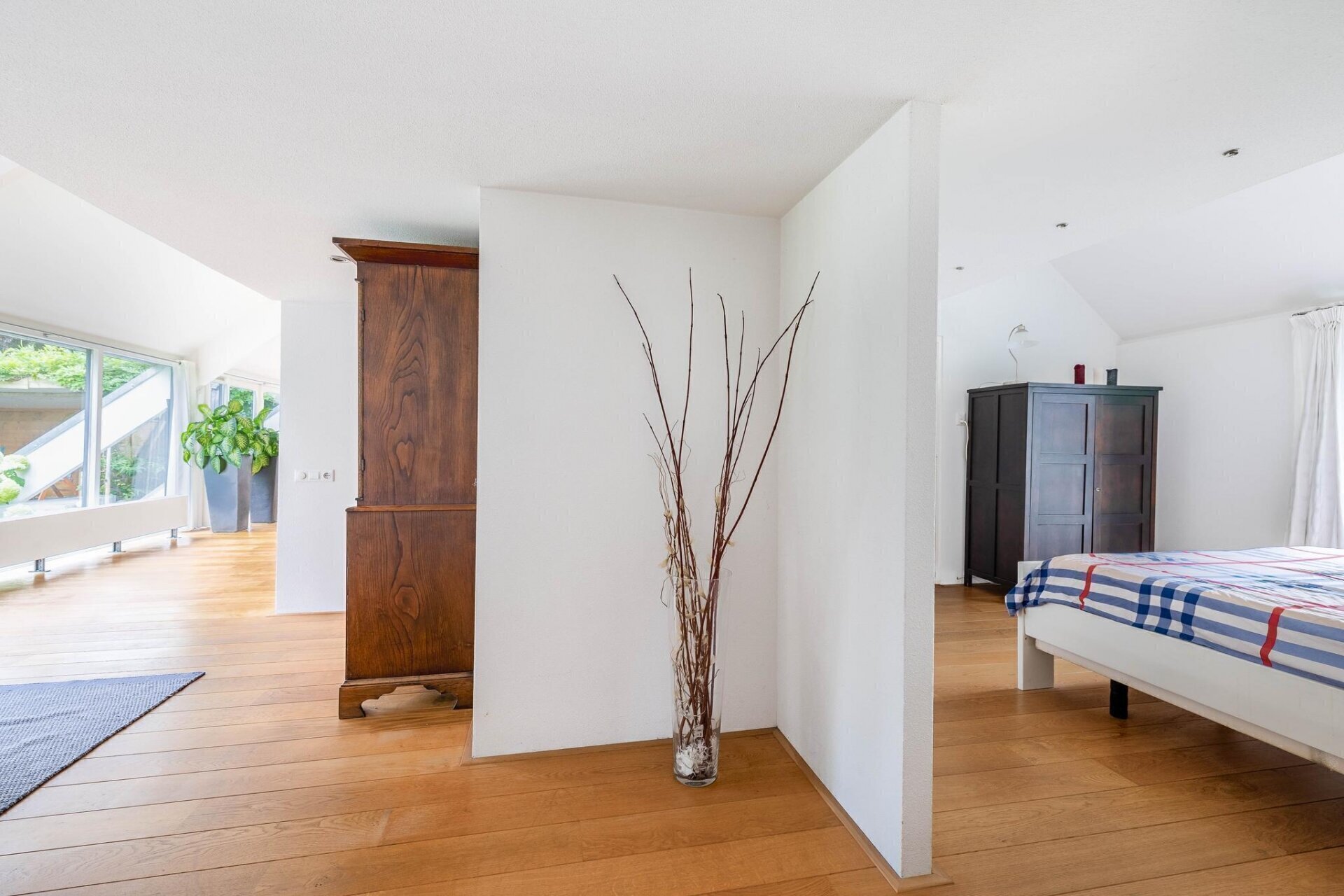 De sfeervolle vide biedt een gezellige zithoek op de eerste verdieping met veel lichtinval en een verbinding met de woonkamer. De ruime overloop biedt mogelijkheden voor een zithoek, hobbyruimte of extra slaapkamer. De overloop geeft toegang tot twee vaste bergkasten en een tweede badkamer met inloopdouche, toilet en wastafel. Vanuit de overloop bereikt u een ruime slaapkamer en een tweede slaapkamer die toegang biedt tot een ruim balkon.