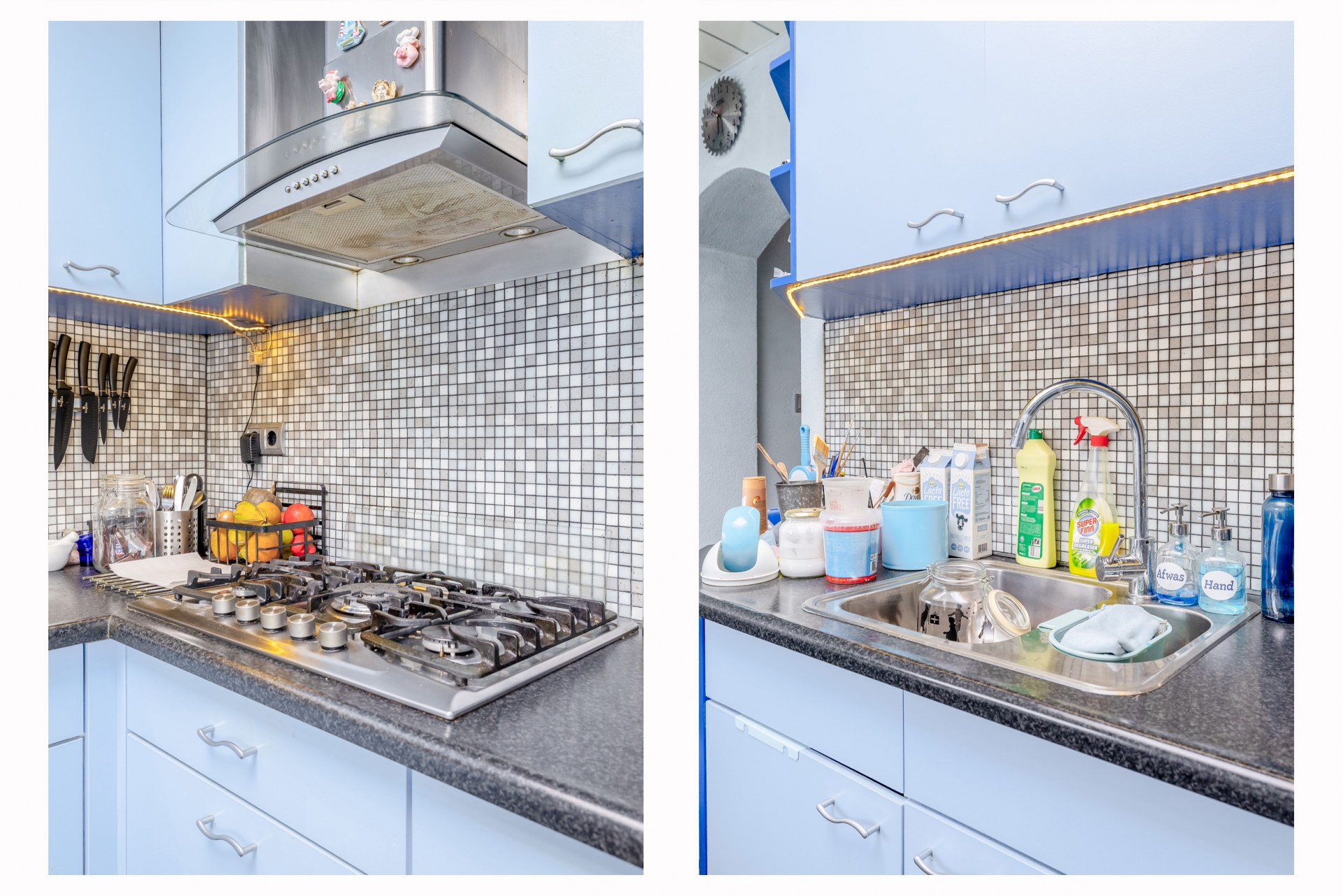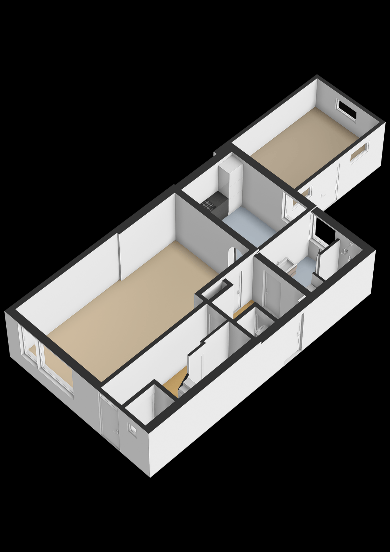 Zodra je binnenkomt valt het op: dit huis heeft potentie. De woonkamer aan de voorzijde is licht dankzij het grote raam aan de straatzijde. Vanuit de hal loop je door naar de keuken, die in de uitbouw is gesitueerd. De keuken heeft een fijne lichtinval door het daklicht en biedt voldoende ruimte voor een eettafel. Op de begane grond vind je verder de badkamer met douche en wastafel, het toilet en een praktische bergkast. De functionele indeling maakt het huis geschikt voor een jong gezin of twee werkende starters die behoefte hebben aan thuiswerkruimte of een logeerkamer.