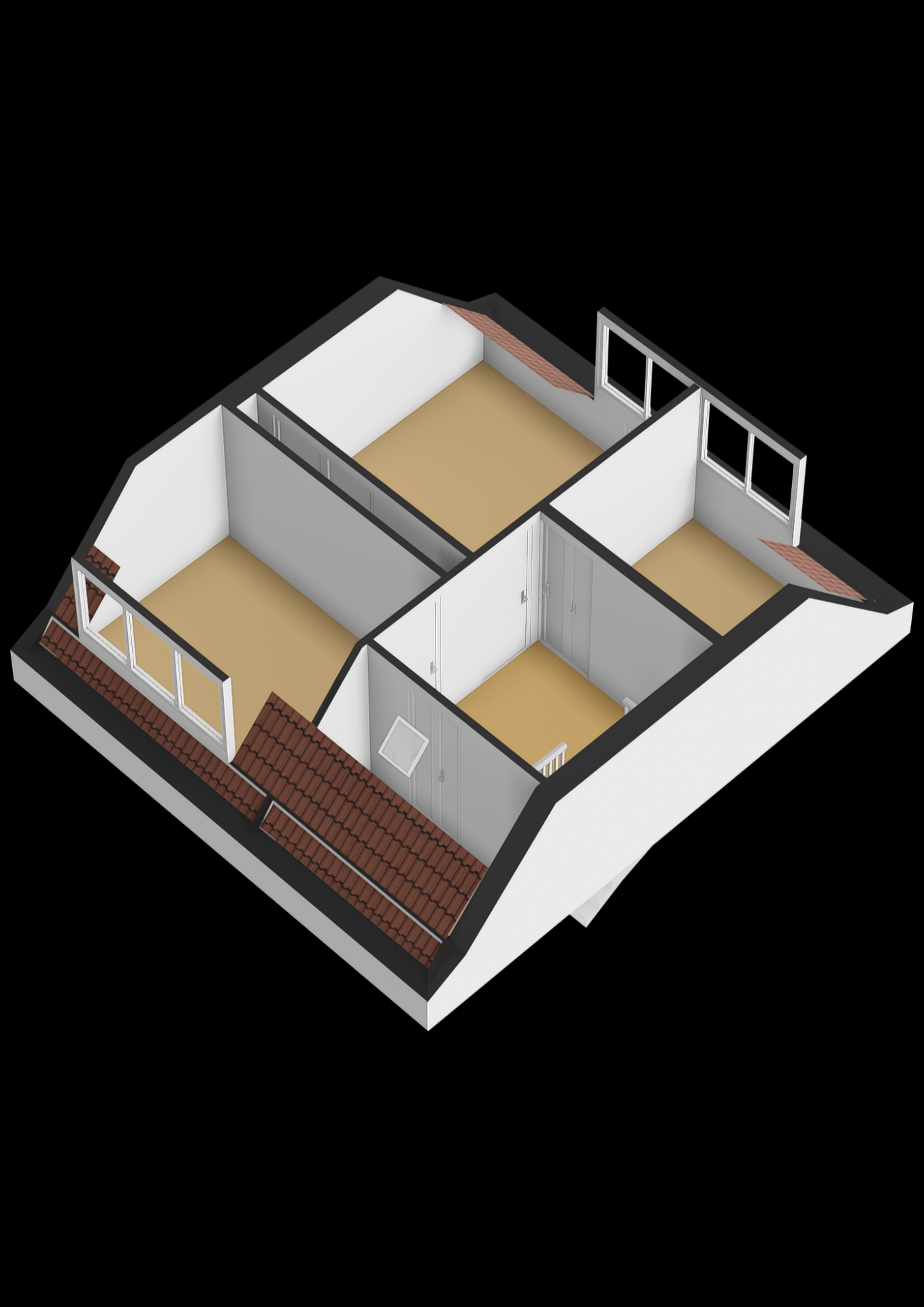 De eerste verdieping telt drie slaapkamers, waarbij de grootste aan de achterzijde ligt en uitkijkt over de tuin. Alle kamers zijn voorzien van ramen en natuurlijke lichtinval, wat de verdieping een prettige sfeer geeft. De overloop biedt daarnaast toegang tot een handige bergzolder, bereikbaar via een vlizotrap – ideaal voor seizoensspullen of extra opslag. Met twee volwaardige woonlagen biedt dit huis een fijne, overzichtelijke indeling die past bij een starter of jong gezin. Denk aan een kinderkamer, werkkamer of logeerkamer – je kunt hier meerdere kanten op.