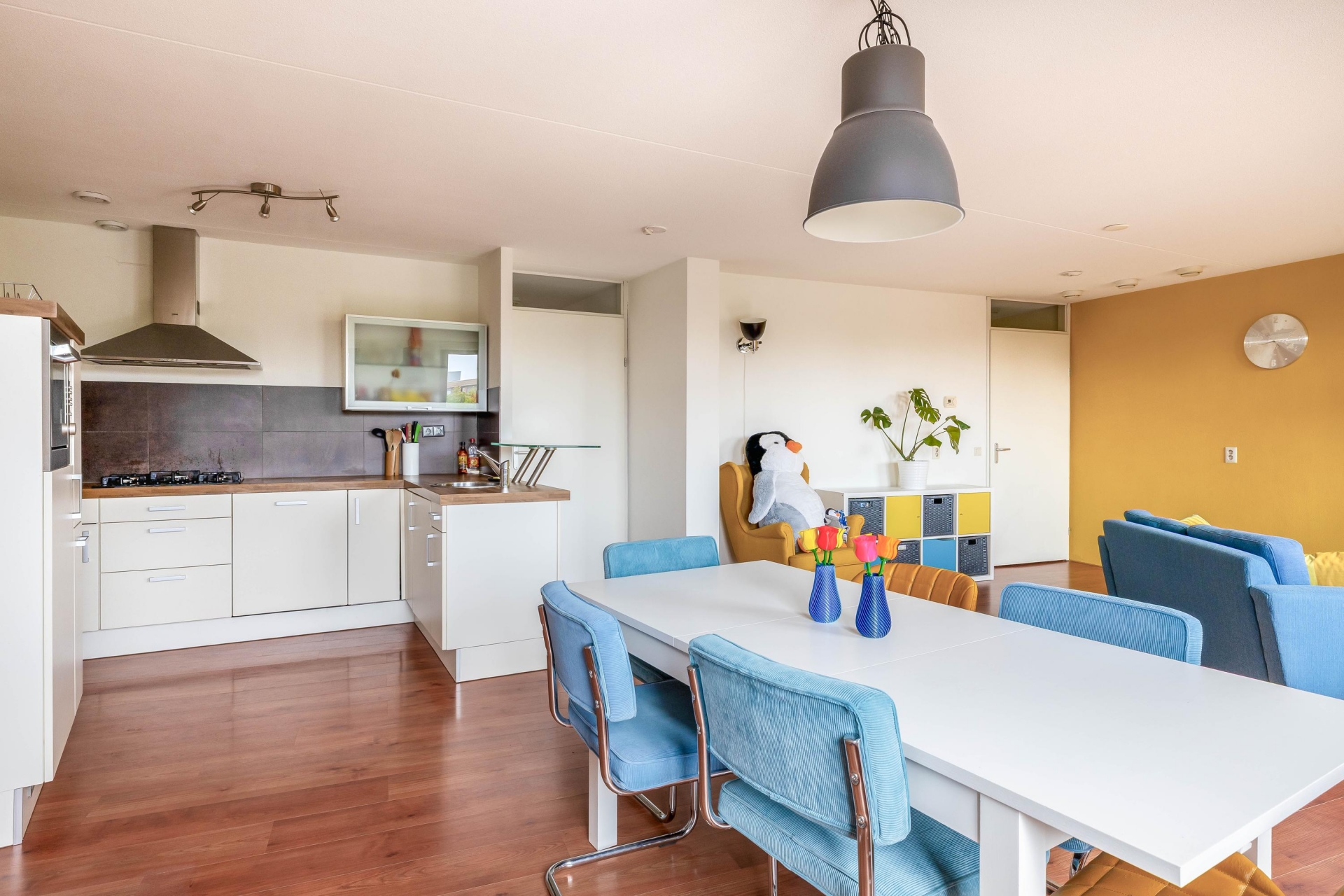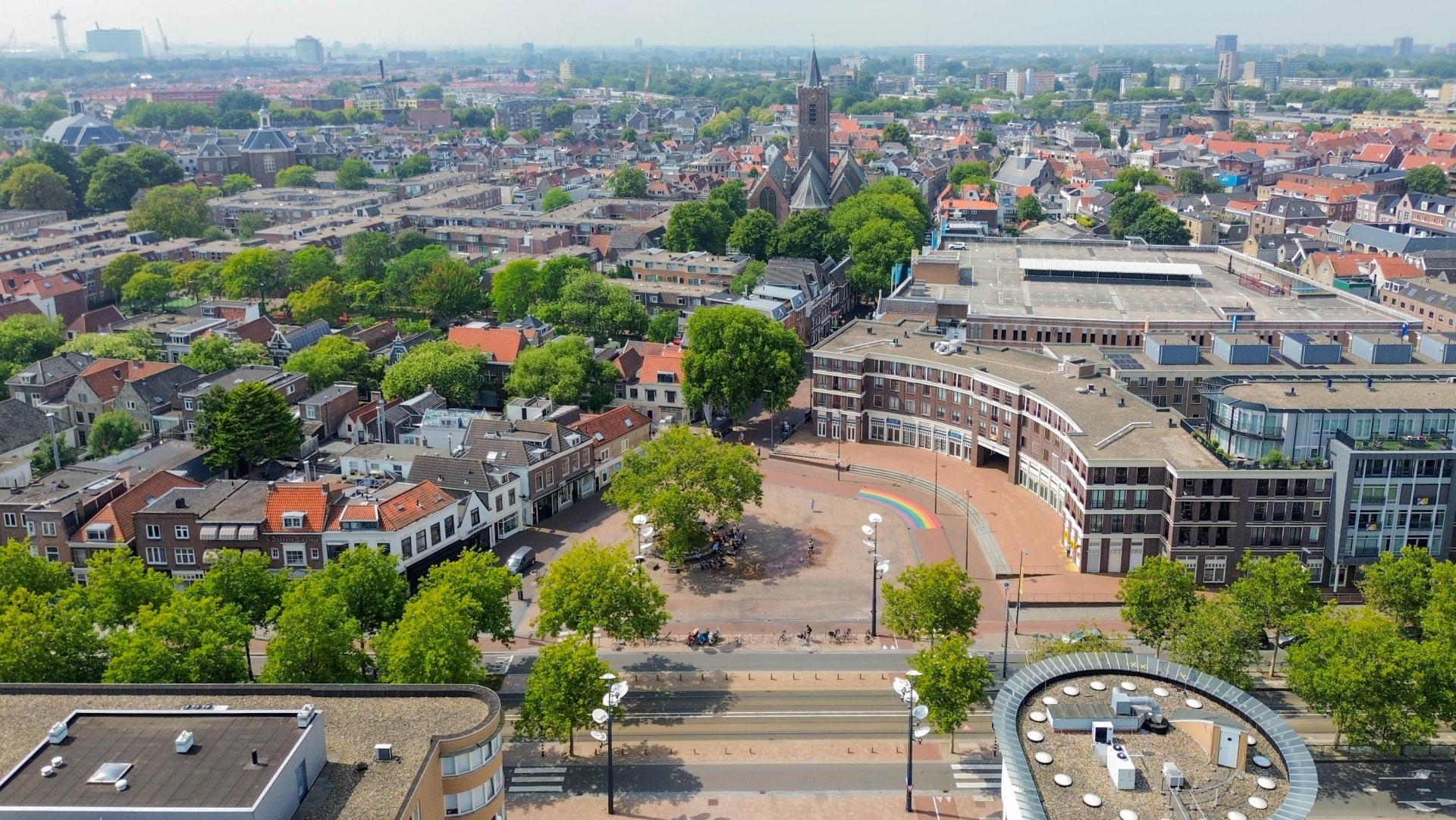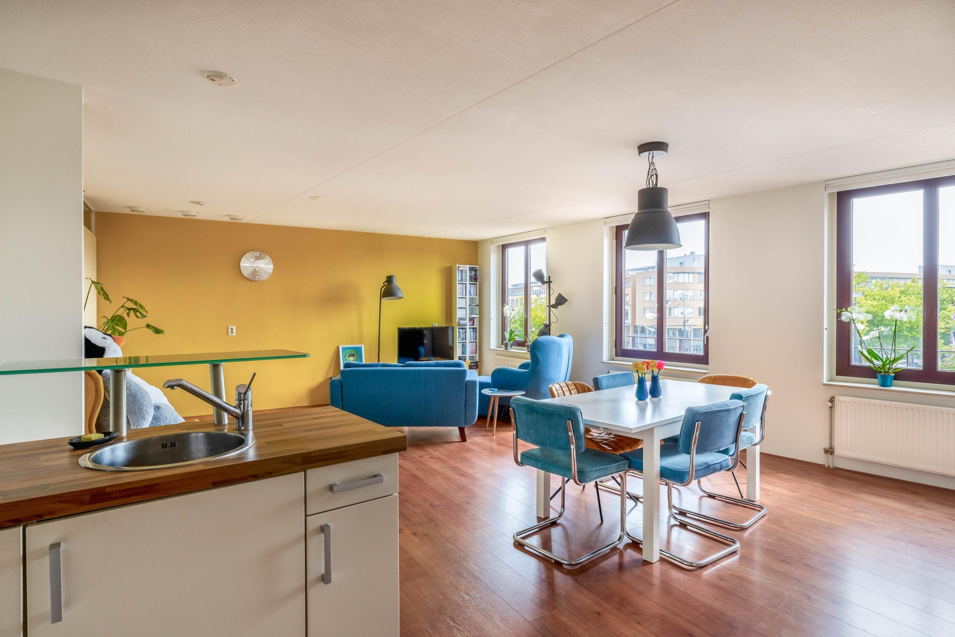 Centraal in het appartement bevindt zich de royale woonkamer met grote raampartijen. Deze zorgen niet alleen voor veel lichtinval, maar ook voor een fantastisch uitzicht over het levendige plein midden in het centrum van Schiedam.