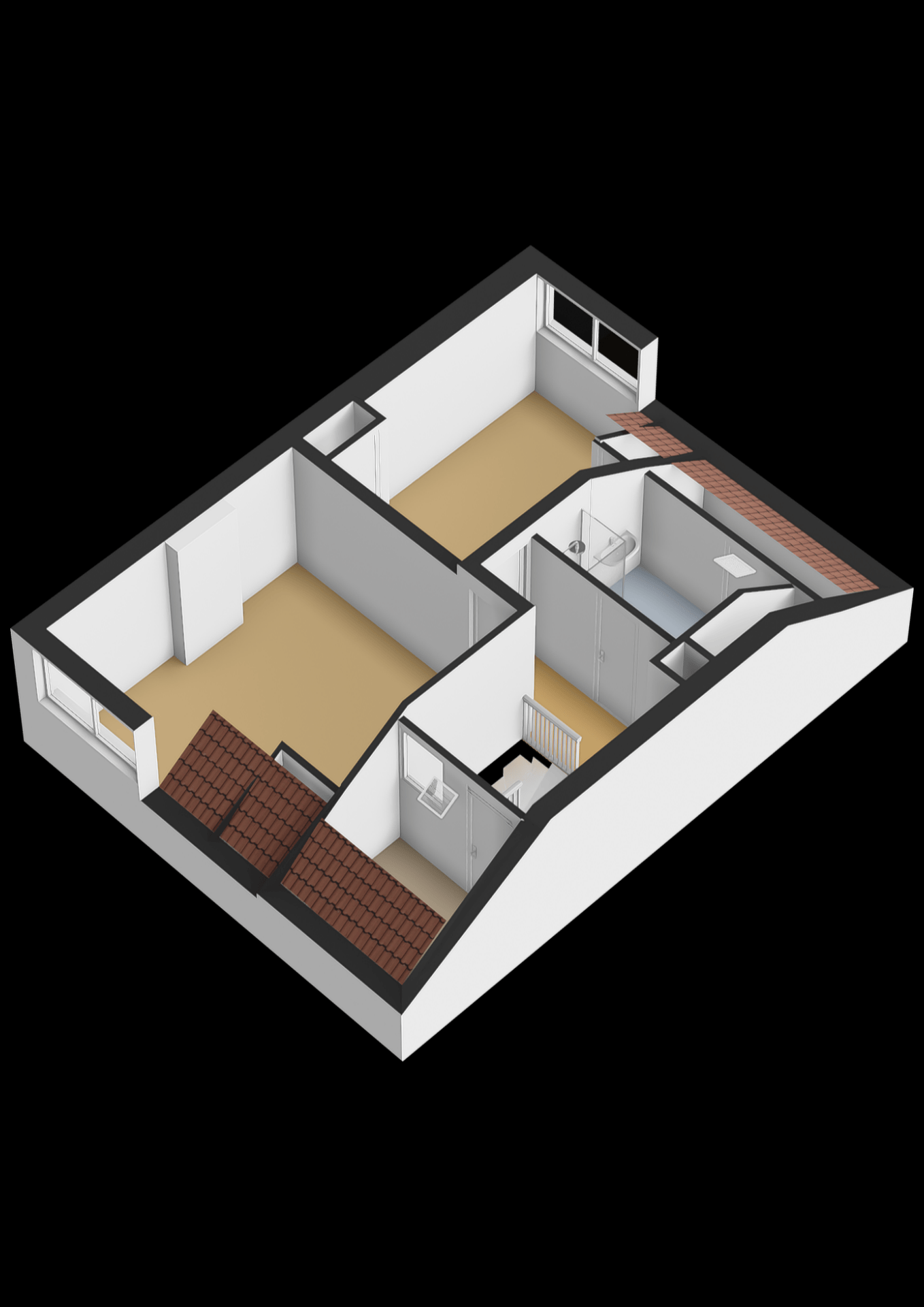 Het appartement beschikt over twee ruime slaapkamers, gelegen op de derde verdieping. De hoofdslaapkamer ligt aan de rustige achterzijde, terwijl de andere kamer ideaal is als werk-, logeer- of kleedruimte. Op dezelfde verdieping vind je ook een berging en een badkamer met douchecabine.
