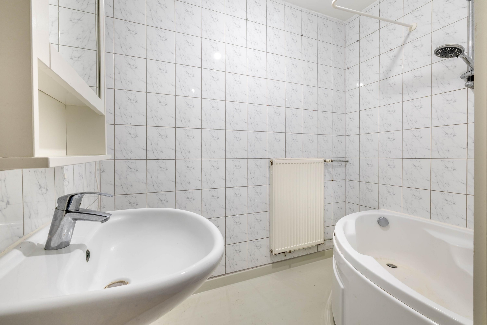 De badkamer is praktisch ingericht met een ligbad voor wie graag ontspant, een wastafel en een kastje erboven voor al je dagelijkse spullen. Hier begin of sluit je je dag rustig en zonder gedoe. Daarnaast is er een prettig apart toilet bij de entree, hygiënisch en slim geplaatst. Aan de achterzijde van het huis vind je het balkon op het noordwesten, jouw plek om ’s avonds van de zon te genieten, een kop koffie te drinken of gewoon even de frisse lucht op te snuiven.