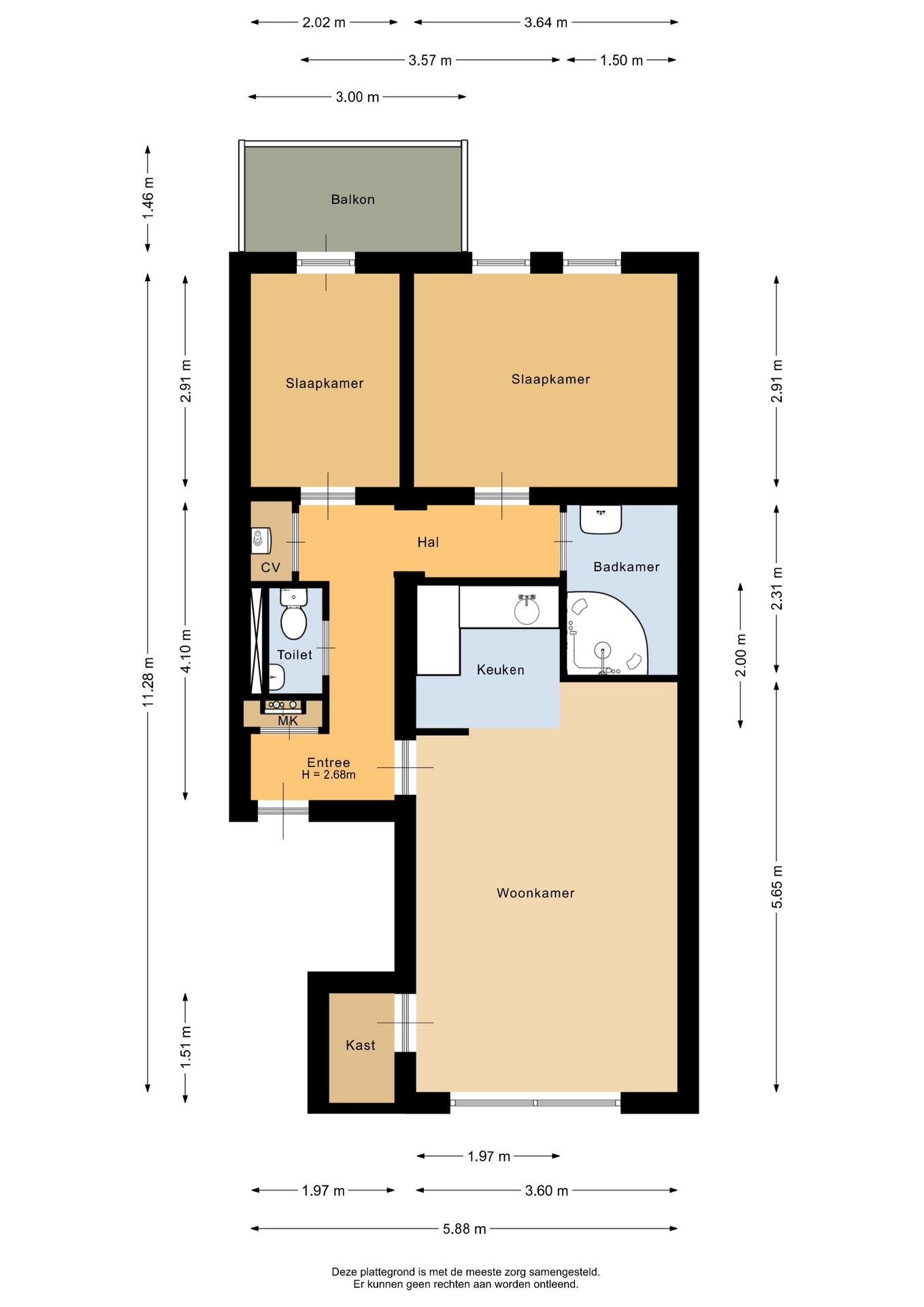 “Deze informatie is door ons met de nodige zorgvuldigheid samengesteld. Onzerzijds wordt echter geen enkele aansprakelijkheid aanvaard voor enige onvolledigheid, onjuistheid of anderszins, dan wel de gevolgen daarvan. Alle opgegeven maten en oppervlakten zijn indicatief.”
