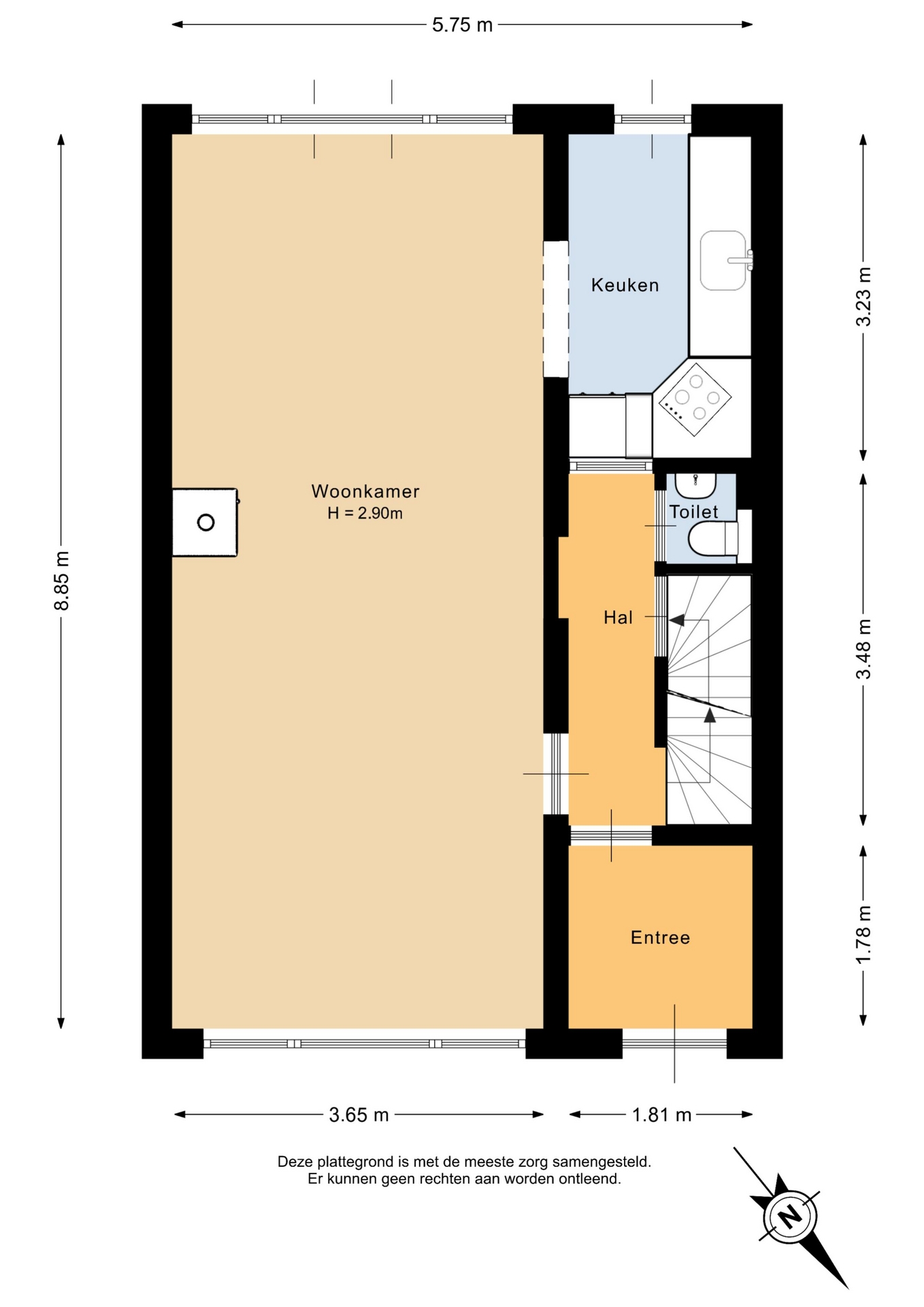 “Deze informatie is door ons met de nodige zorgvuldigheid samengesteld. Onzerzijds wordt echter geen enkele aansprakelijkheid aanvaard voor enige onvolledigheid, onjuistheid of anderszins, dan wel de gevolgen daarvan. Alle opgegeven maten en oppervlakten zijn indicatief.”