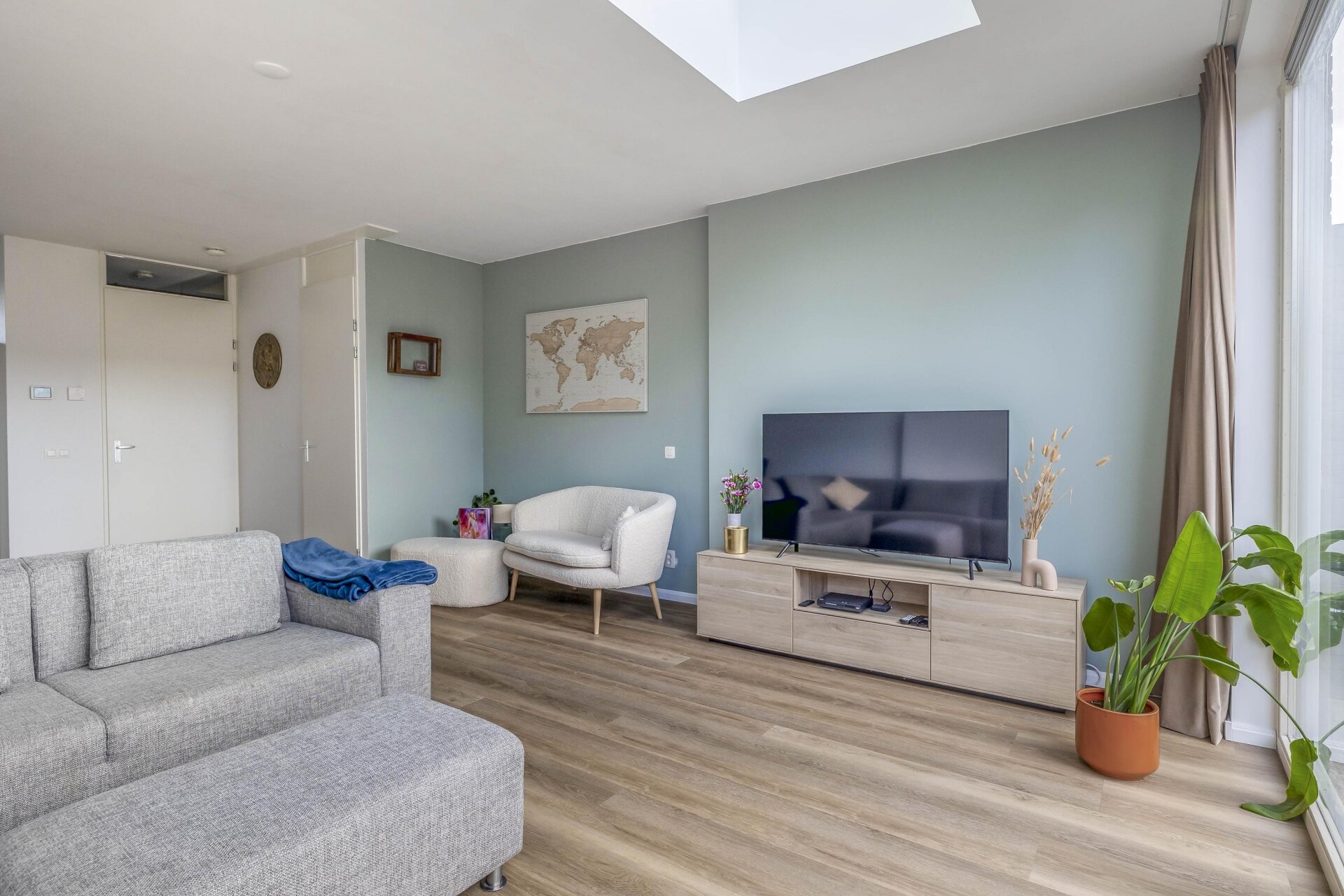 De uitgebouwde woonkamer aan de achterzijde van de woning is een hele fijne lichte plek. Dankzij de lichtkoepel en de openslaande deuren naar de tuin geeft dit een prettige verbinding met buiten. De zithoek is royaal genoeg voor een grote hoekbank en biedt tegelijk een knusse sfeer. De keuken ligt aan de voorzijde met zicht op de straat heeft een praktische indeling met voldoende werk- en bergruimte, ideaal voor wie van koken houdt en is voorzien van diverse inbouwapparatuur waaronder een vaatwasser, inductiekookplaat, koelvriescombinatie en combi oven.