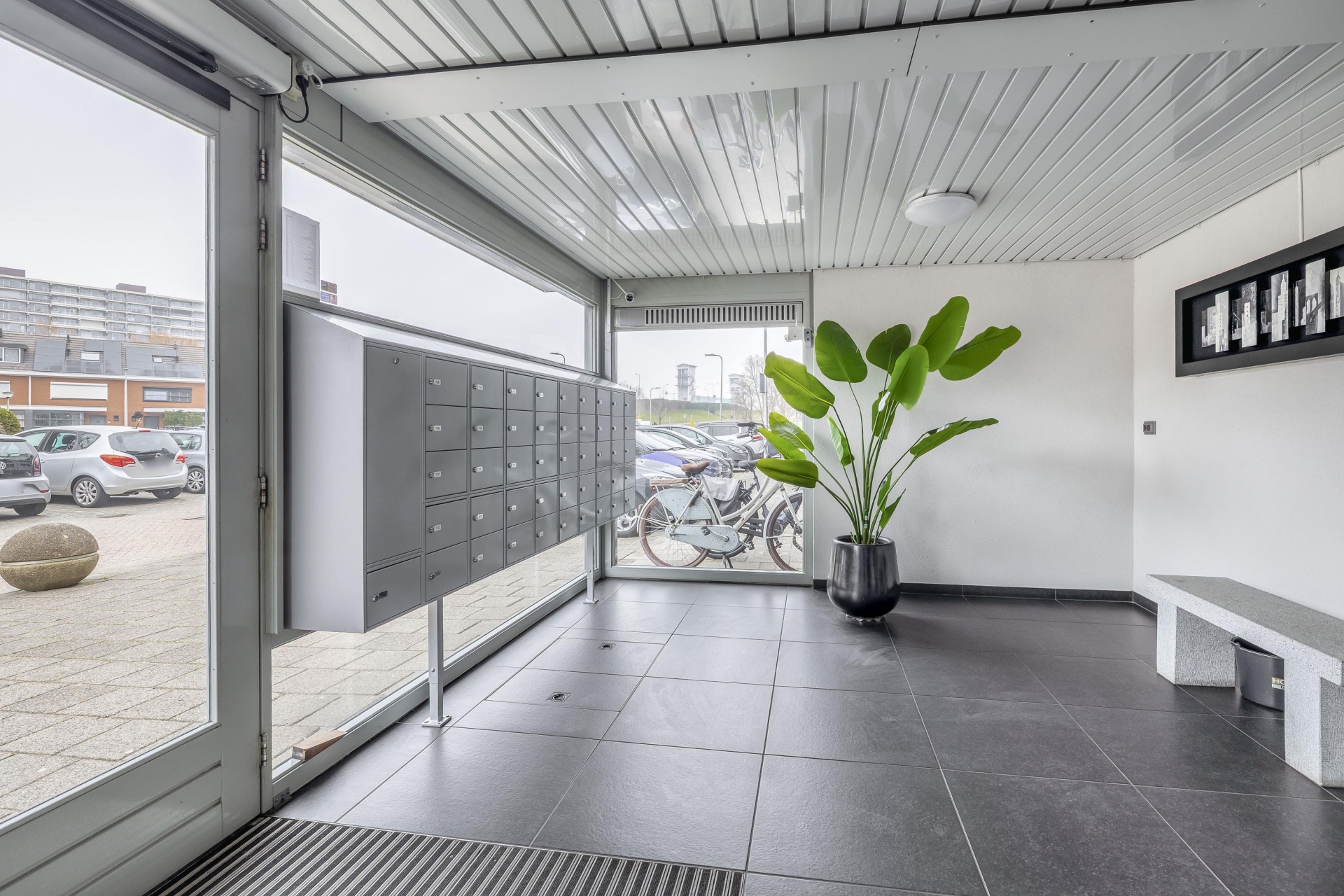 Op de begane grond is een centrale hal met brievenbussen, bellentableau met intercom. Met de lift of het trappenhuis bereikt u de diverse verdiepingen.