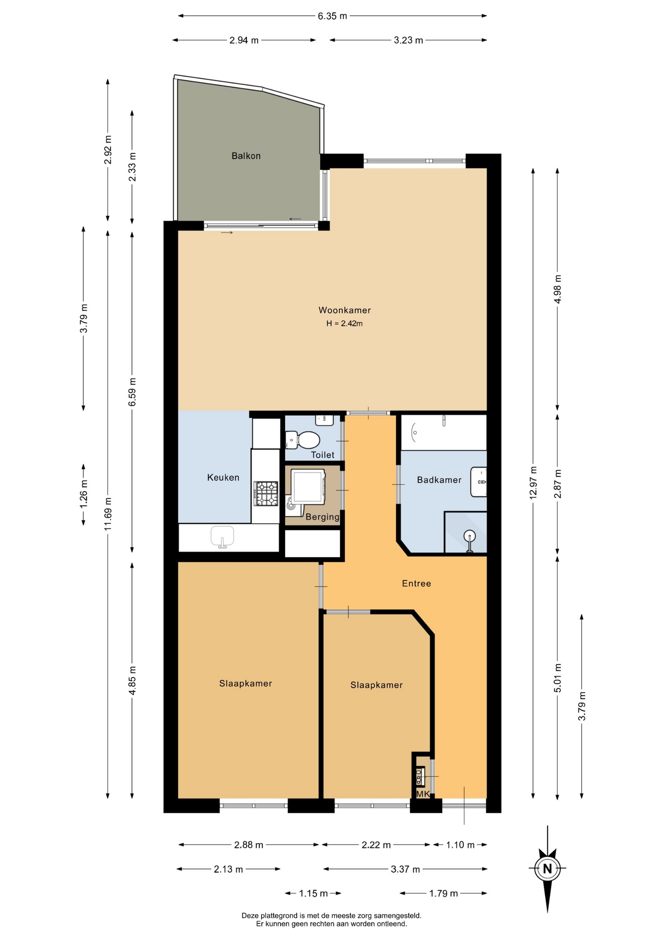 “Deze informatie is door ons met de nodige zorgvuldigheid samengesteld. Onzerzijds wordt echter geen enkele aansprakelijkheid aanvaard voor enige onvolledigheid, onjuistheid of anderszins, dan wel de gevolgen daarvan. Alle opgegeven maten en oppervlakten zijn indicatief.”