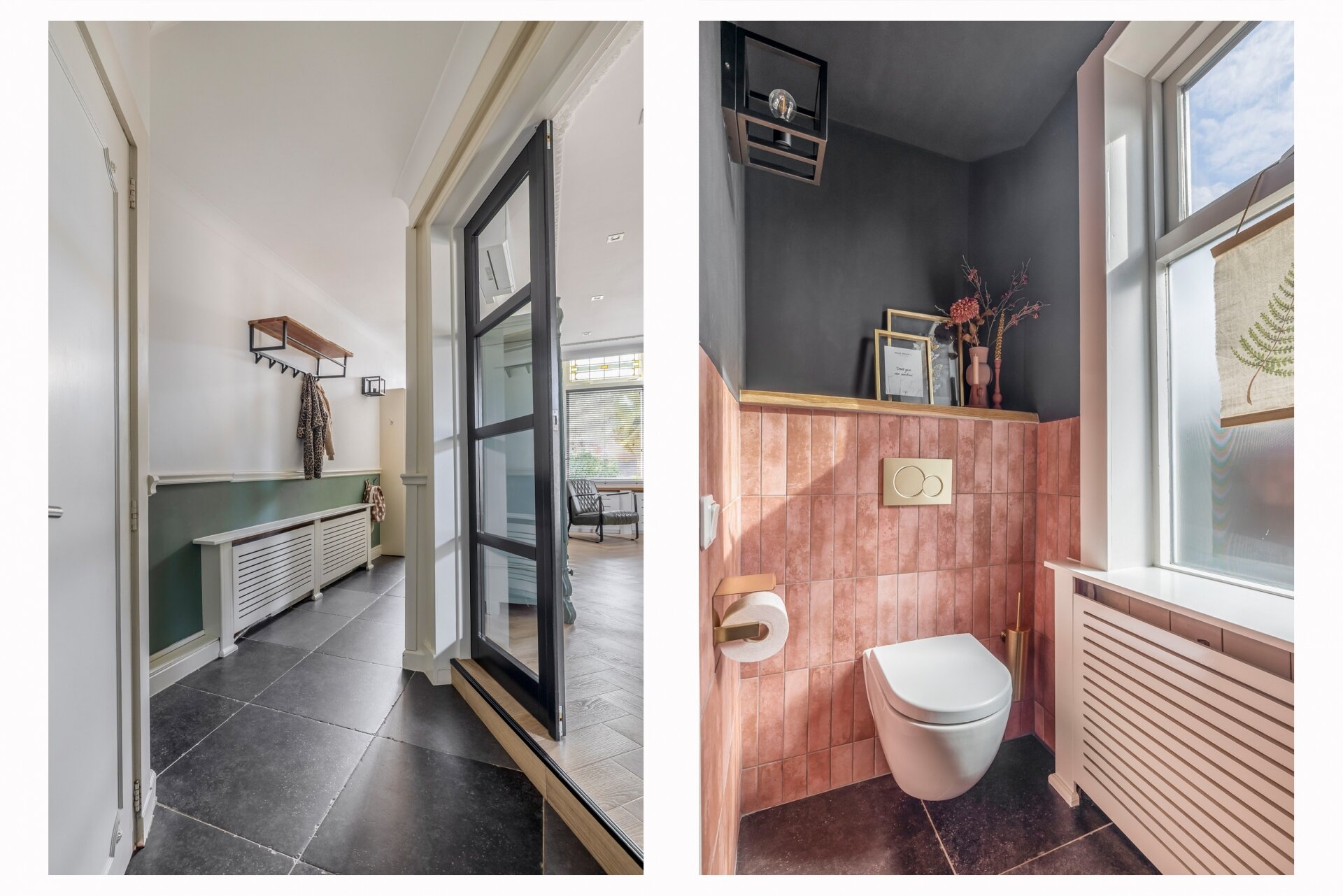 Zodra je de woonkamer binnen stapt, voel je het: hier wordt met liefde en smaak gewoond. De royale leefruimte op dijkniveau is licht, ruim en warm ingericht. De mooie visgraatvloer, hoge plafonds en open verbinding naar de keuken geven het geheel een prettige sfeer. De woonkamer biedt ruimte voor een grote zithoek én een eettafel — ideaal voor gezellige etentjes met familie of vrienden.