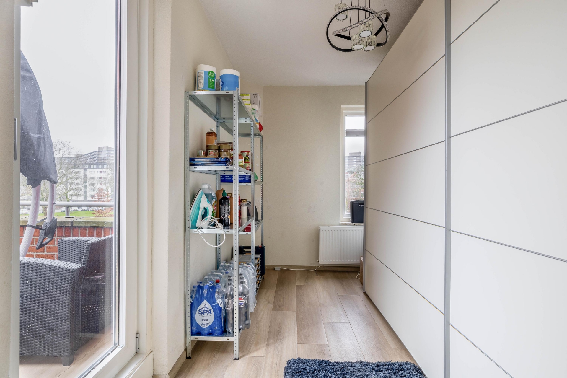 Heerlijk, goed onderhouden appartement gelegen op de 3e verdieping. Het appartement beschikt over 77 m² woonoppervlakte. Dit is verdeeld over een ruime, lichte woonkamer met een moderne open keuken, 2 slaapkamers, een badkamer en apart nog het toilet. Ook aan buitenruimtes geen gebrek, er is namelijk een terras aanwezig met vrij uitzicht over groen en een speeltuintje. Het terras is gelegen op het westen waardoor je tot laat van de zon kan genieten. Tevens is er vanuit de woonkamer toegang tot een kleiner balkon, welke gelegen is op het noorden. In de overdekte parkeergarage is een eigen parkeerplaats aanwezig (nummer 52). Hierdoor wordt het zoeken naar een parkeerplek verleden tijd. Ook is er nog een privé berging aanwezig in de kelder van het complex. Kortom, hier ga je niets te kort komen.