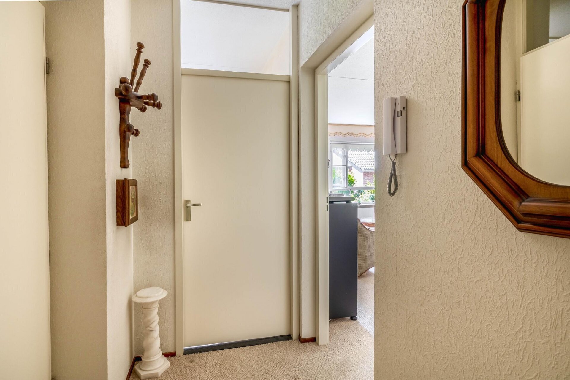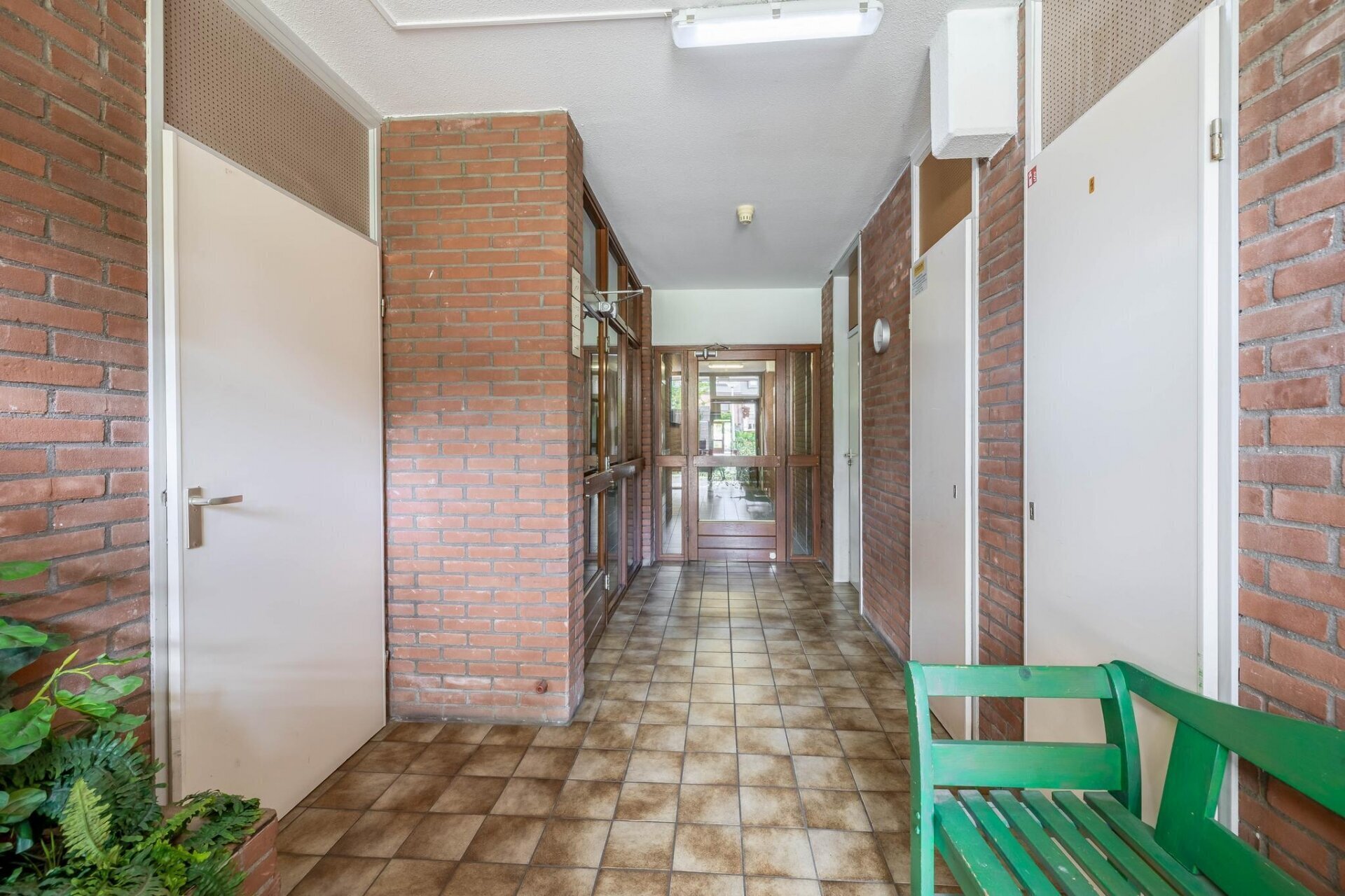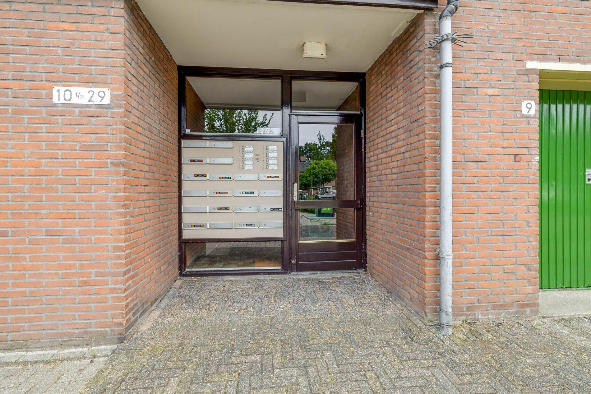 Afgesloten portiek met brievenbussen, een belsysteem en toegang tot de woning.