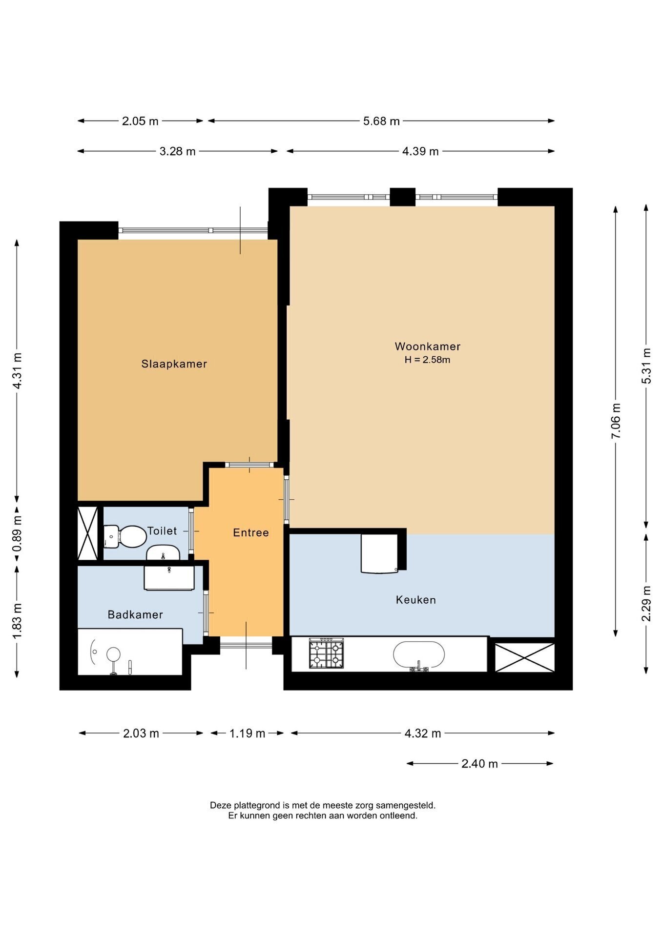 - Totale woonoppervlakte circa 56 m2;
