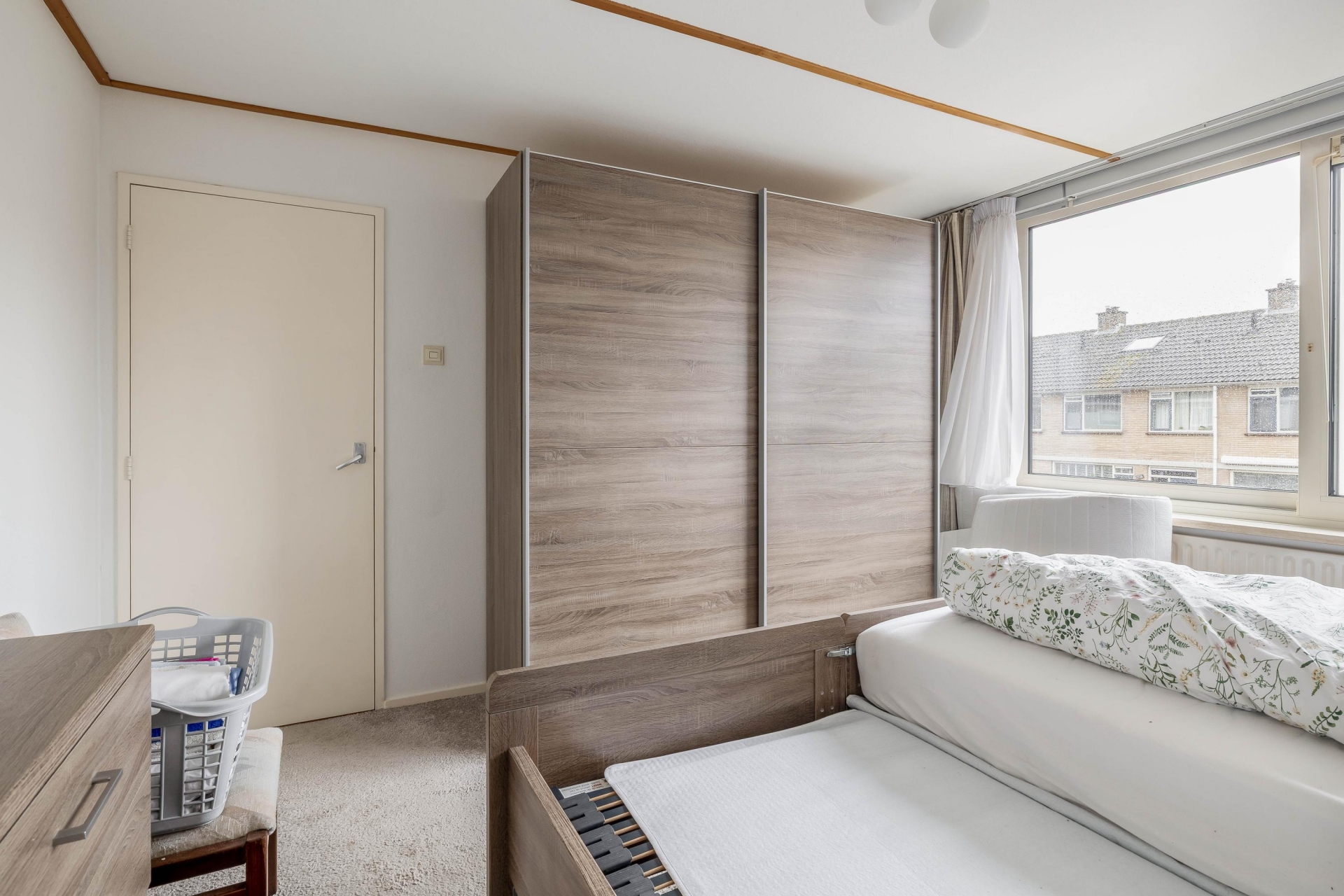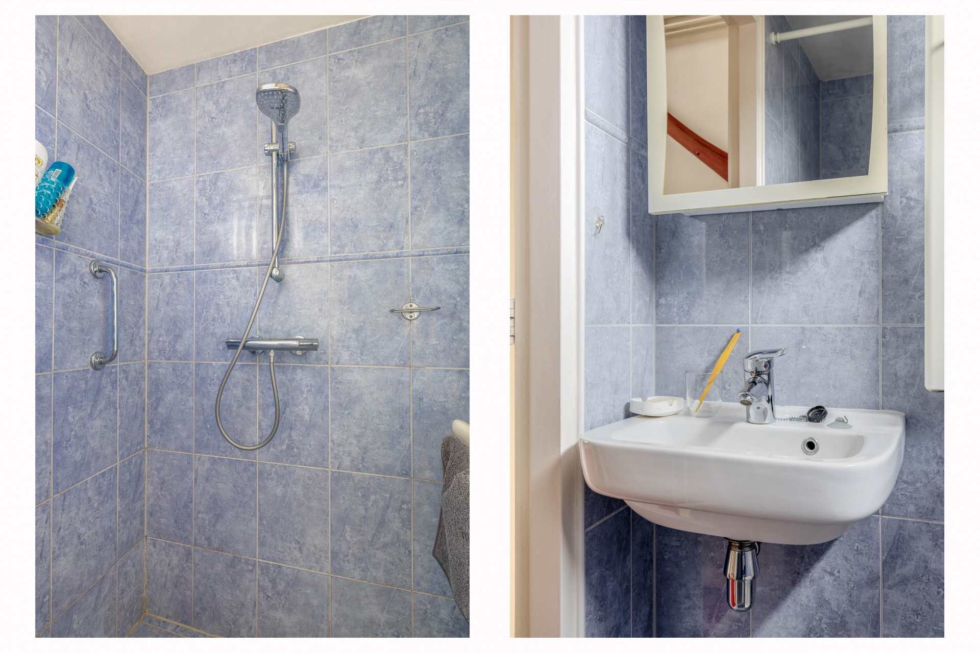 1e verdieping: Vanuit de overloop heeft u toegang tot alle vertrekken op deze verdieping. Zo treft u aan de achterzijde van de woning de eerste twee slaapkamers. Aan de voorzijde van de woning treft u de derde slaapkamer. Grenzend aan deze slaapkamer treft u de badkamer. Deze volledig betegelde badkamer is voorzien van een wastafelmeubel, 2e toilet en douchecabine.