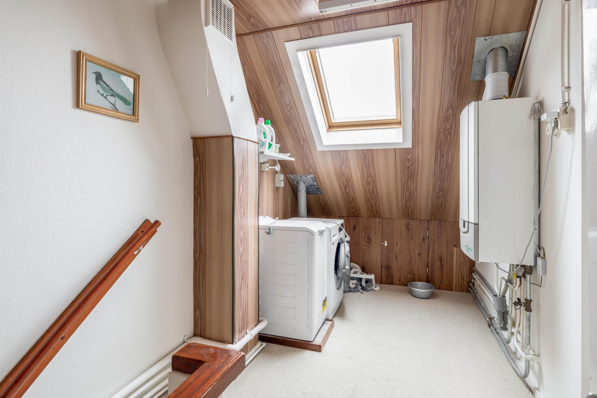 2e verdieping: Middels de vaste trap komt u terecht op de overloop van de tweede verdieping. Hier treft u de wasmachine aansluiting en de eigen cv ketel. Vanuit de overloop komt u terecht in de vierde slaapkamer.