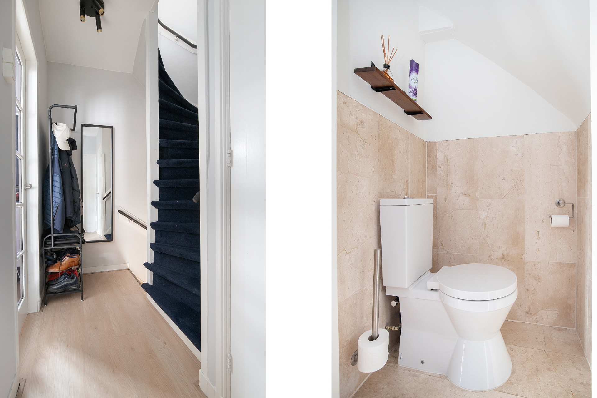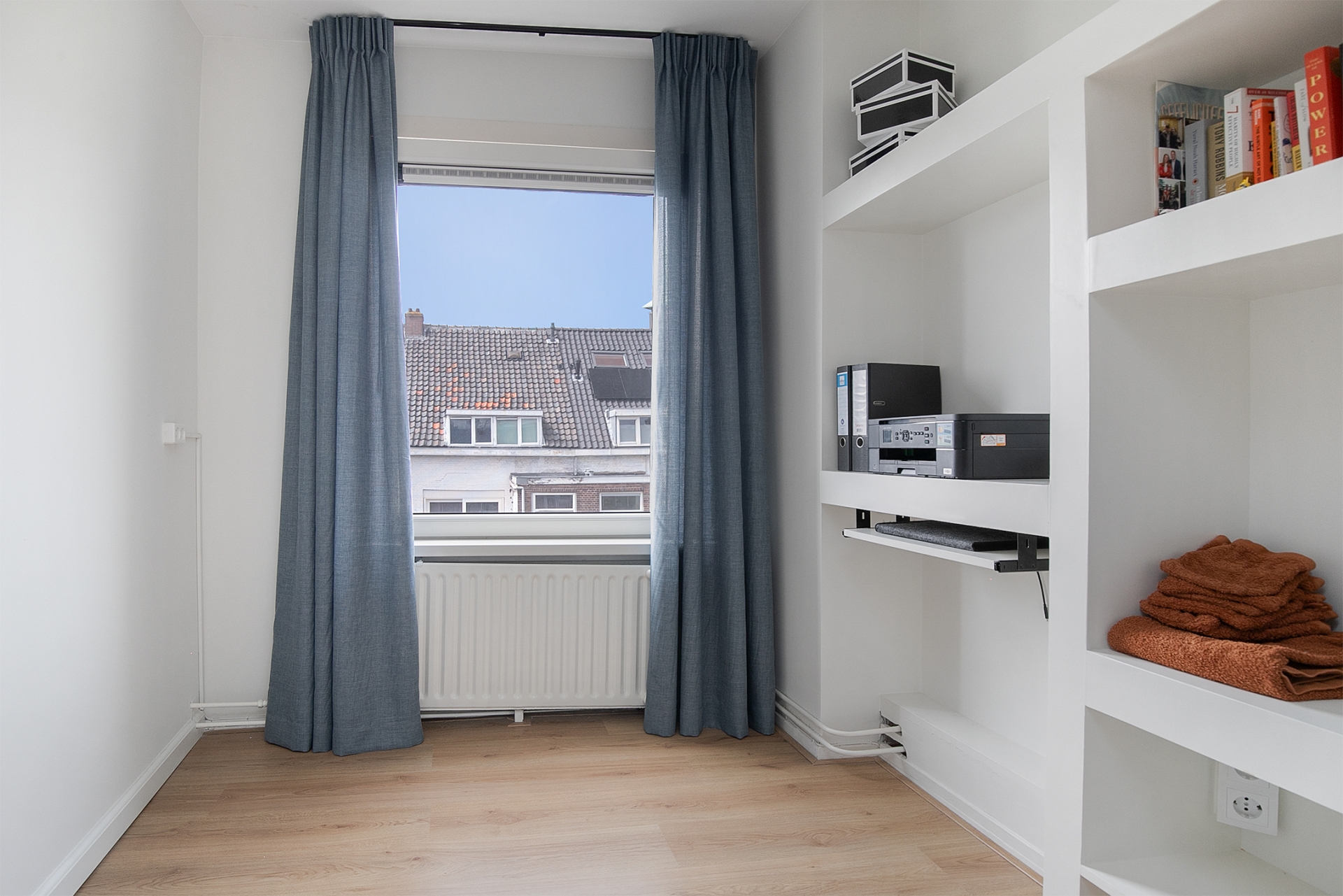 De tweede verdieping telt twee slaapkamers en een moderne badkamer. De grootste slaapkamer biedt ruimte aan een tweepersoonsbed en een royale kledingkast. Slaapkamer twee is ideaal als logeerkamer, werkkamer of inloopkast, net wat jij nodig hebt. De badkamer heeft een luxe en rustige uitstraling met een ruime inloopdouche, een modern wastafelmeubel en een spiegel met verlichting en verwarming. De opstelling voor wasmachine is slim weggewerkt, net als de cv-ketel. Kortom, comfortabel wonen zonder concessies.