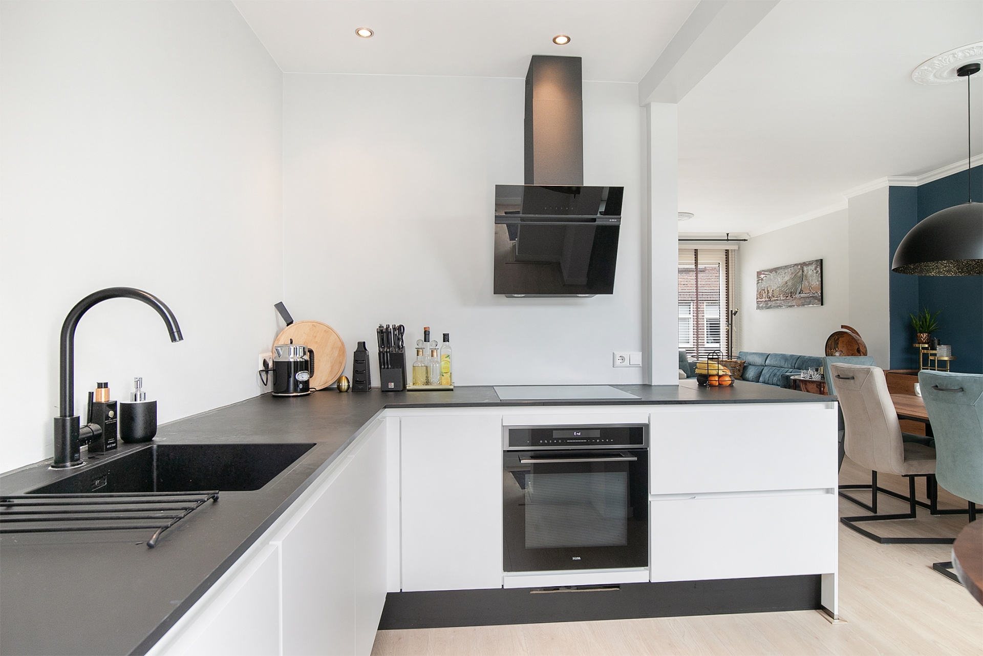 Op de eerste verdieping vind je een lichte en ruime doorzonwoonkamer met grote raampartijen aan weerszijden. Aan de achterzijde is de moderne open keuken geplaatst in een matzwarte opstelling, compleet met inbouwapparatuur zoals een combi-oven, koel-/vriescombinatie, vaatwasser en een inductiekookplaat met afzuigkap. De inbouwspots geven extra sfeer aan de ruimte. Vanuit de keuken heb je toegang tot het zonnige balkon, perfect voor een koffietje of borrel in de middagzon. Tevens is in 2013 de fundering hersteld waardoor je helemaal klaar bent voor de toekomst.
