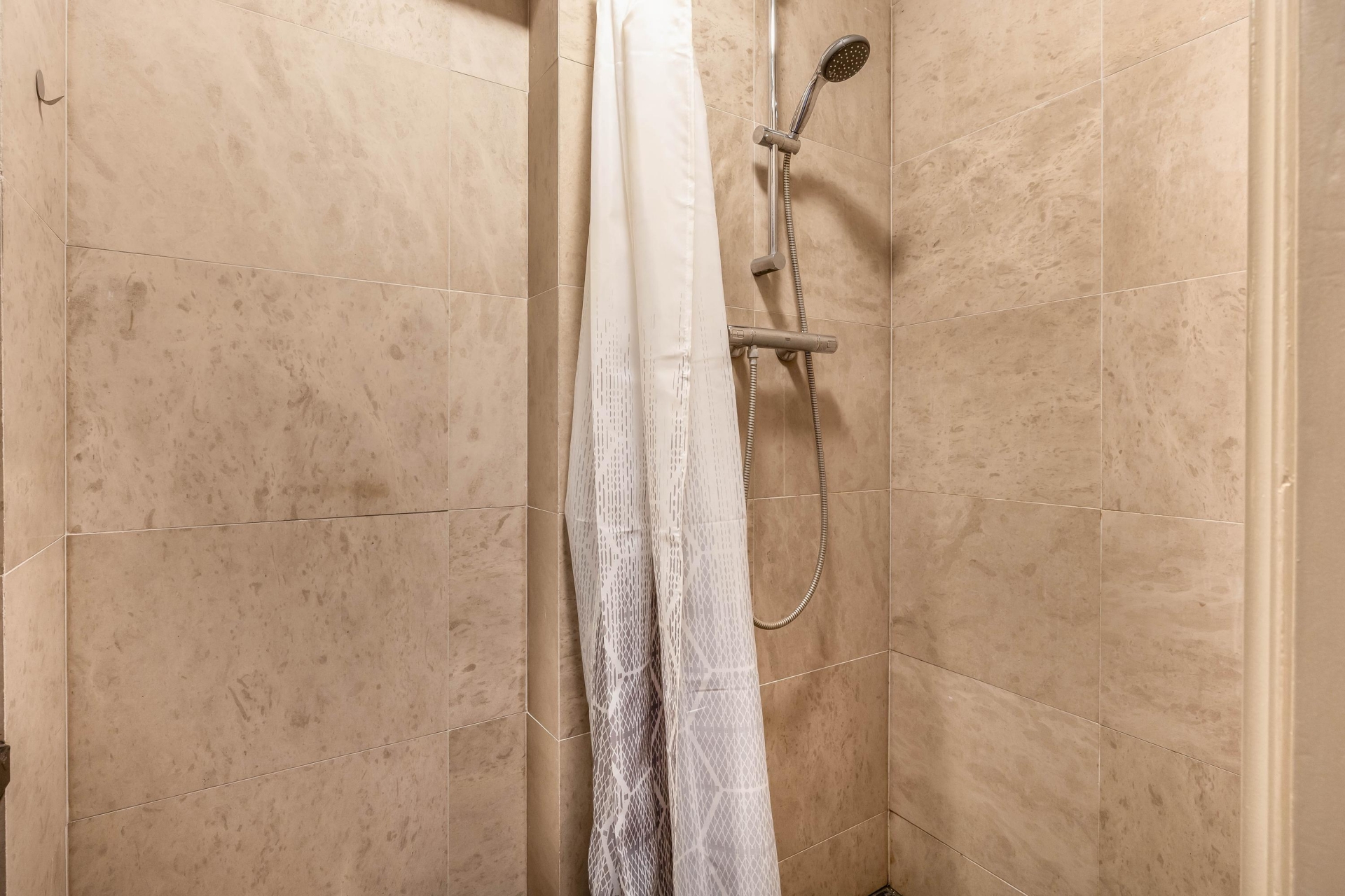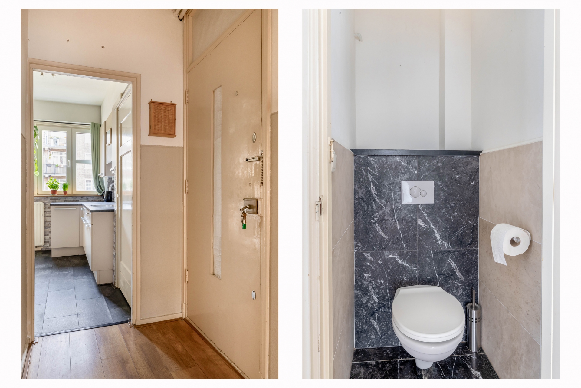 De aparte slaapkamer ligt aan de rustige kant van het appartement en is groot genoeg voor een tweepersoonsbed en een flinke kast. Prettig detail: het toilet en de douche zijn gescheiden van elkaar, wat het dagelijks gebruik net even makkelijker maakt. Een slimme indeling dus, zonder ruimte te verliezen.