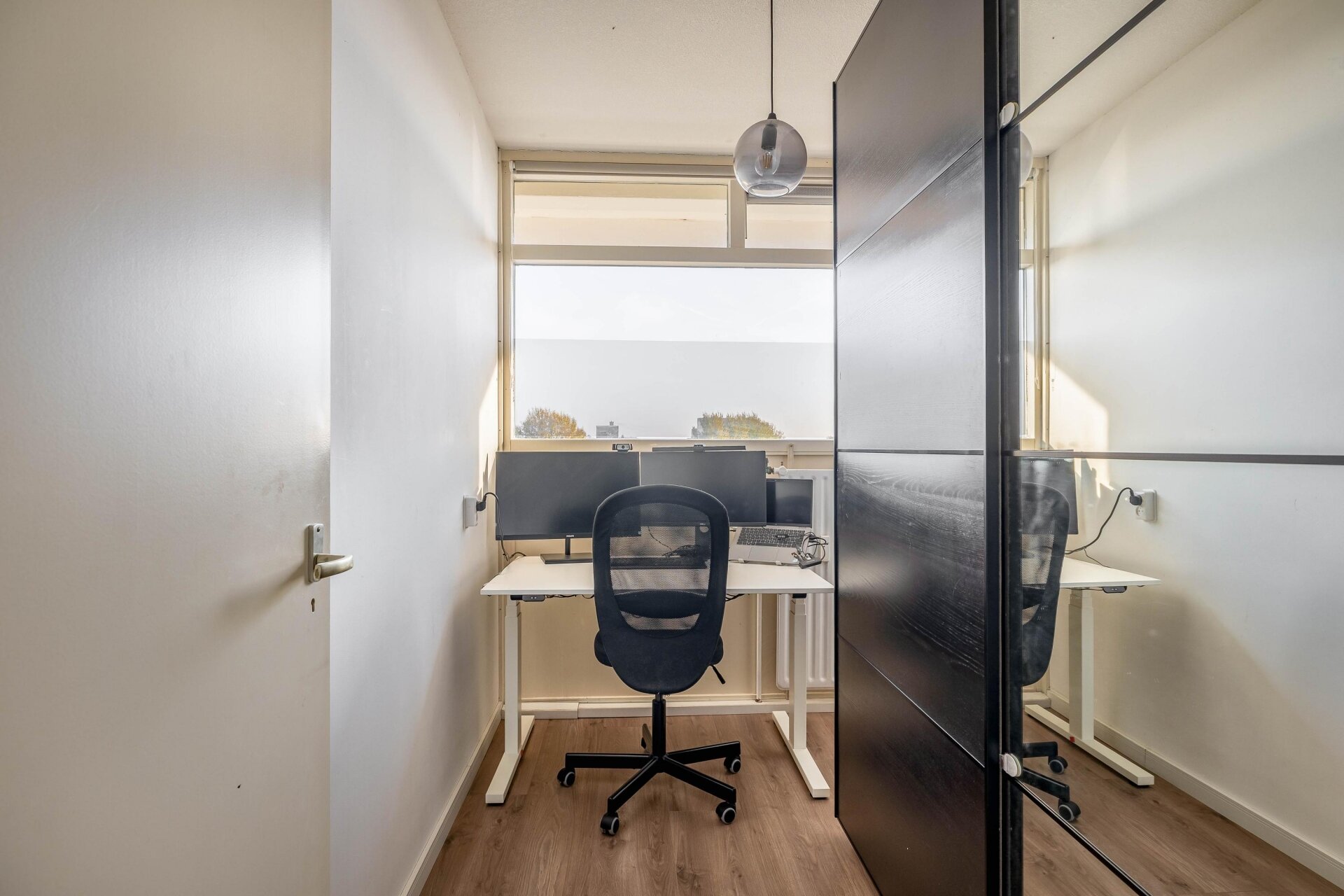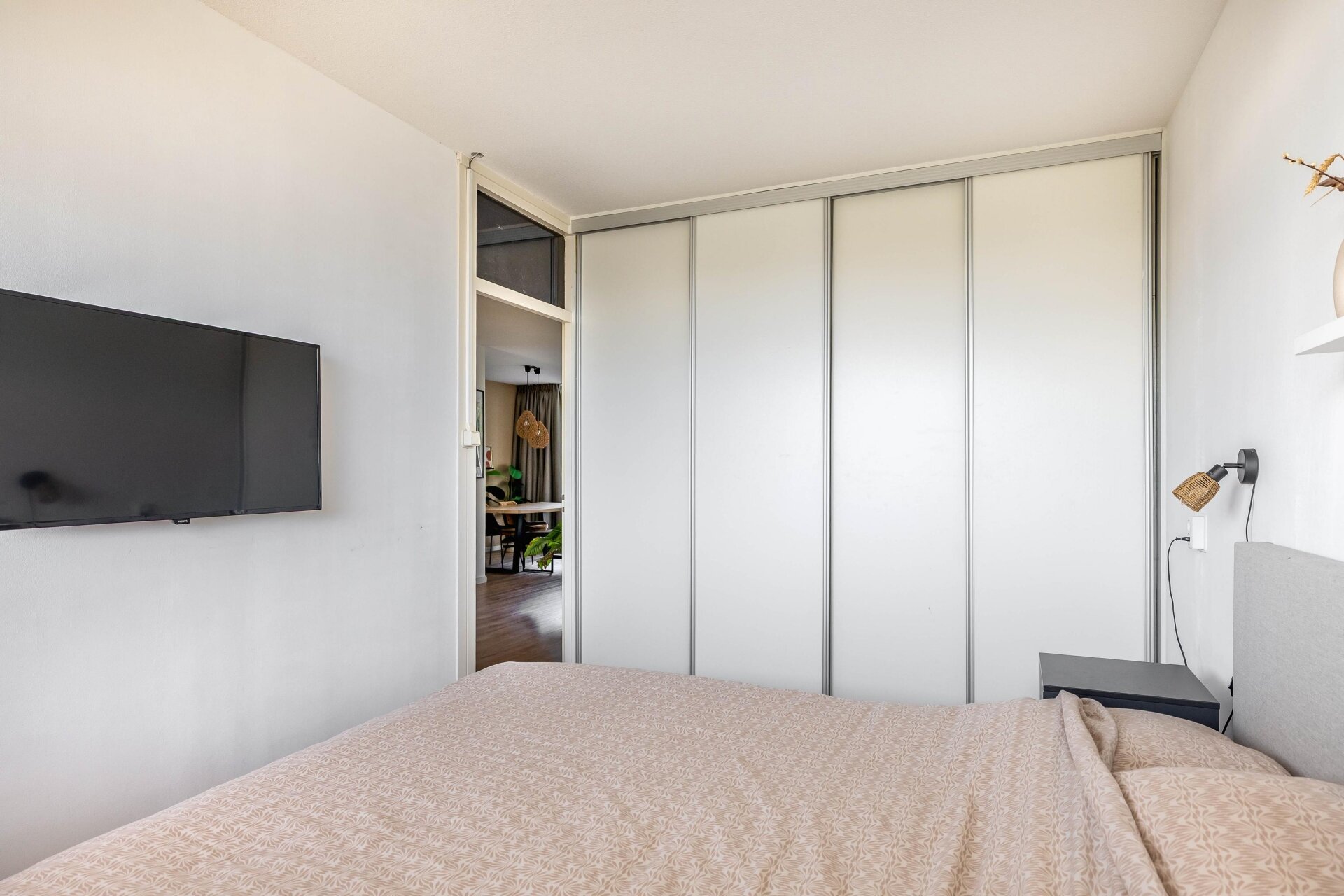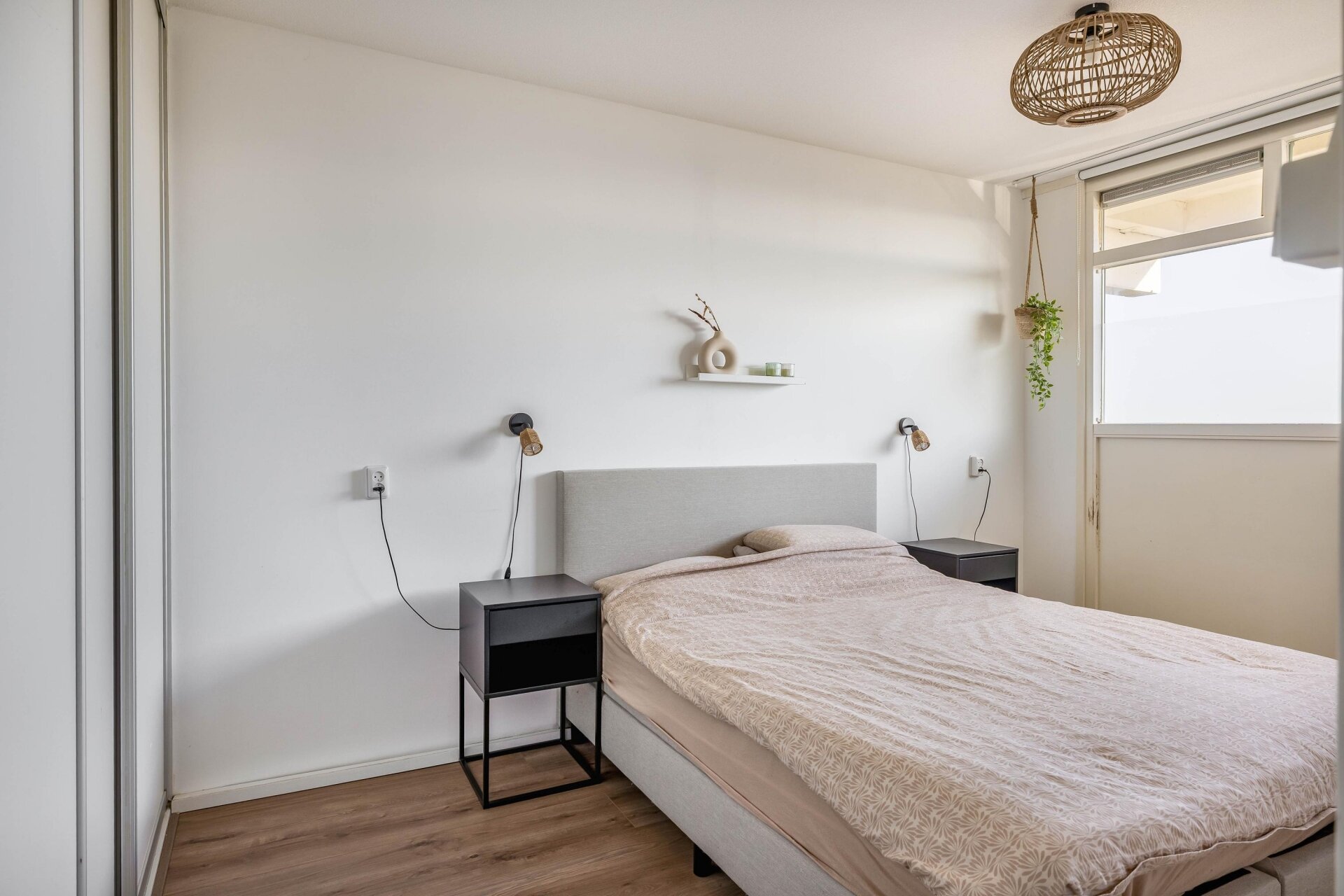 Het appartement telt twee slaapkamers. Aan de voorzijde bevinden zich twee kamers van circa 6 m² en 10 m², waarvan de grootste is voorzien van een handige vaste kast.