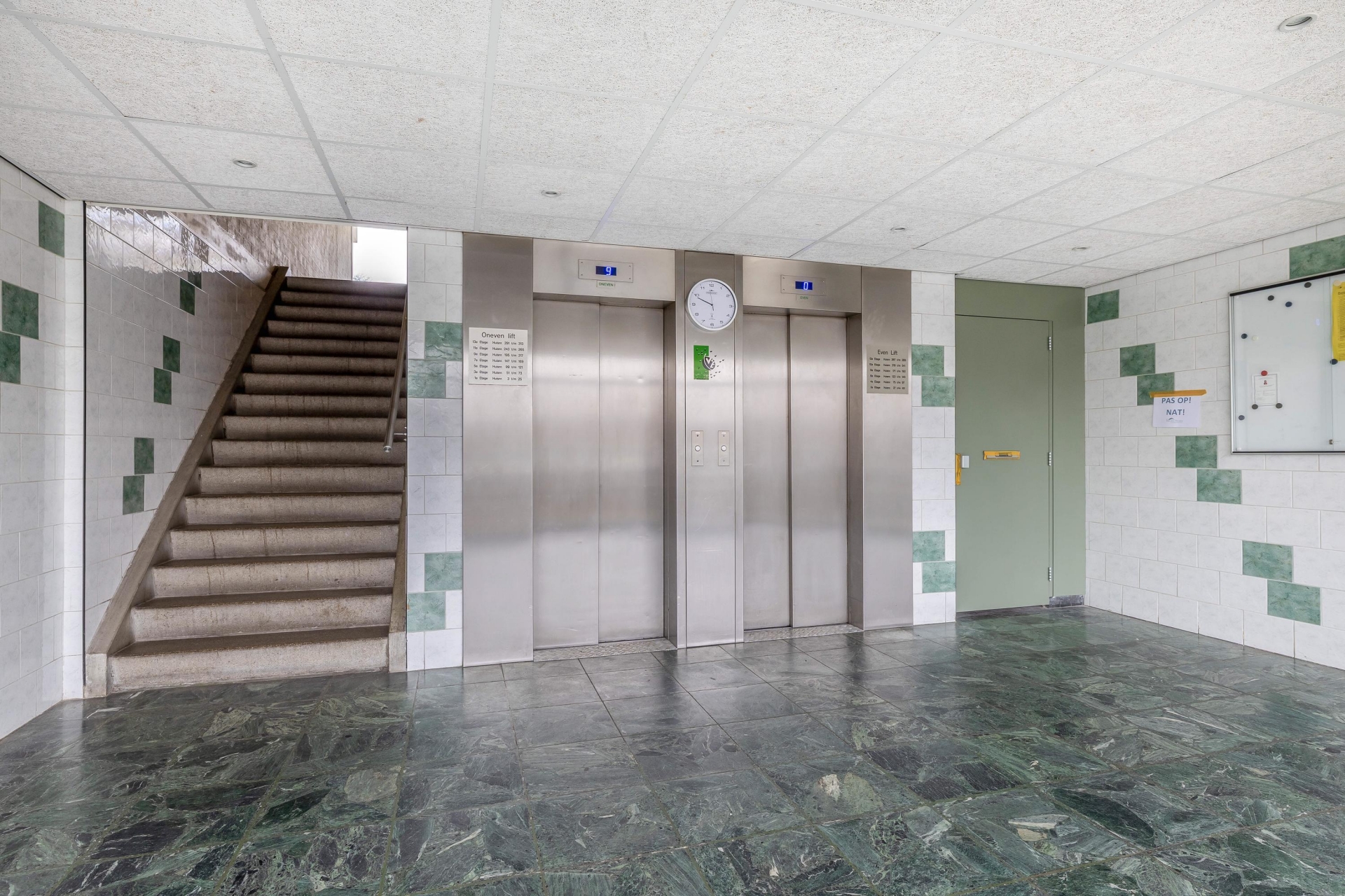 Gezamenlijke entree met bellentableau, trappenhuis en lift naar de 4e verdieping.