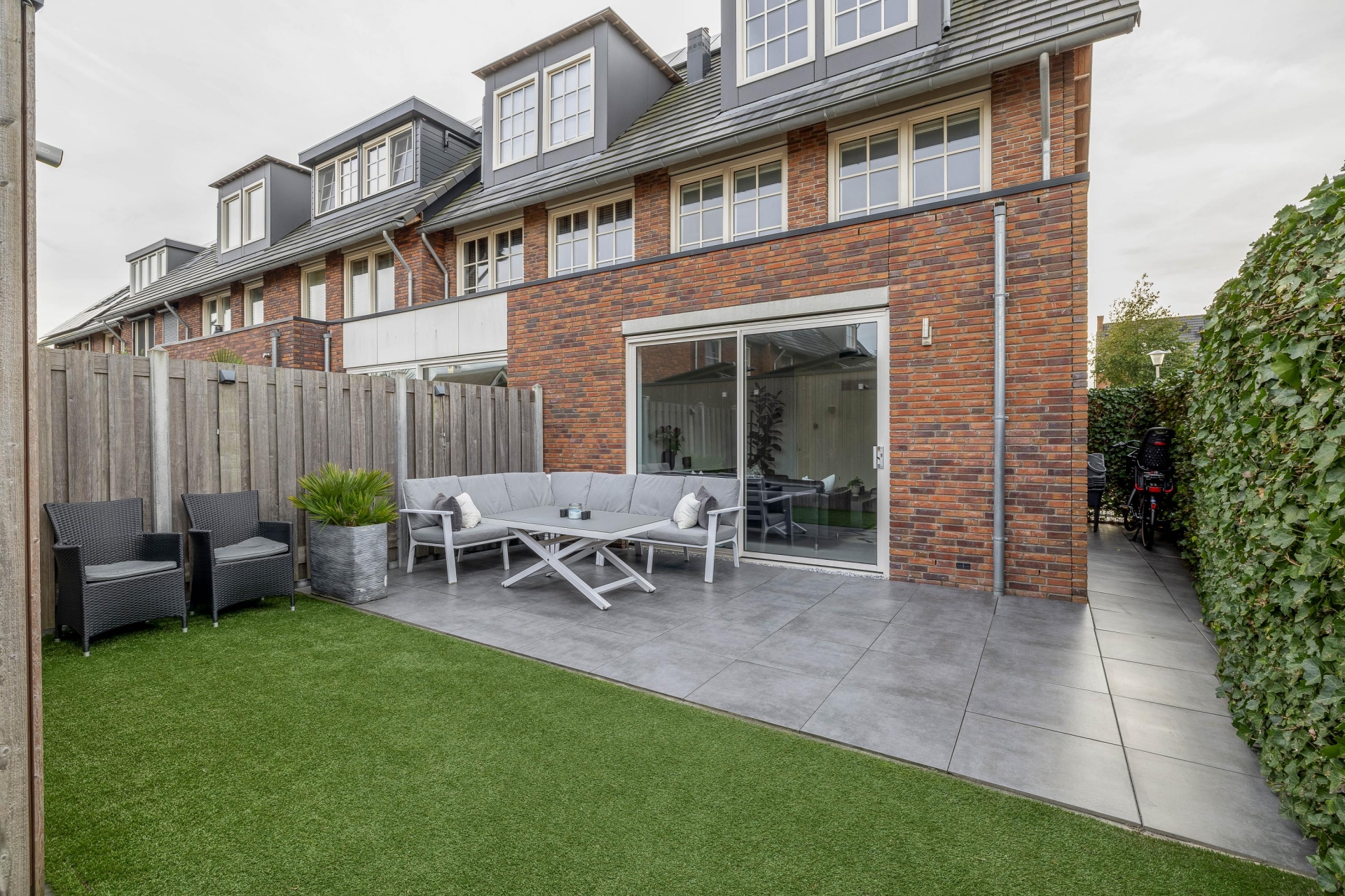 Buiten is het net zo verzorgd als binnen. De tuin ligt op het noordoosten en is volledig bestraat met moderne tegels en kunstgras, dus onderhoudsarm én strak. Door de hoekligging is de tuin extra breed en geniet je van veel privacy. Er is ruimte genoeg voor een grote loungehoek of eettafel, perfect voor zomerse avonden met familie of vrienden. De voorzijde van het huis is eveneens fraai aangelegd en grenst aan een rustige straat met voldoende parkeergelegenheid.
