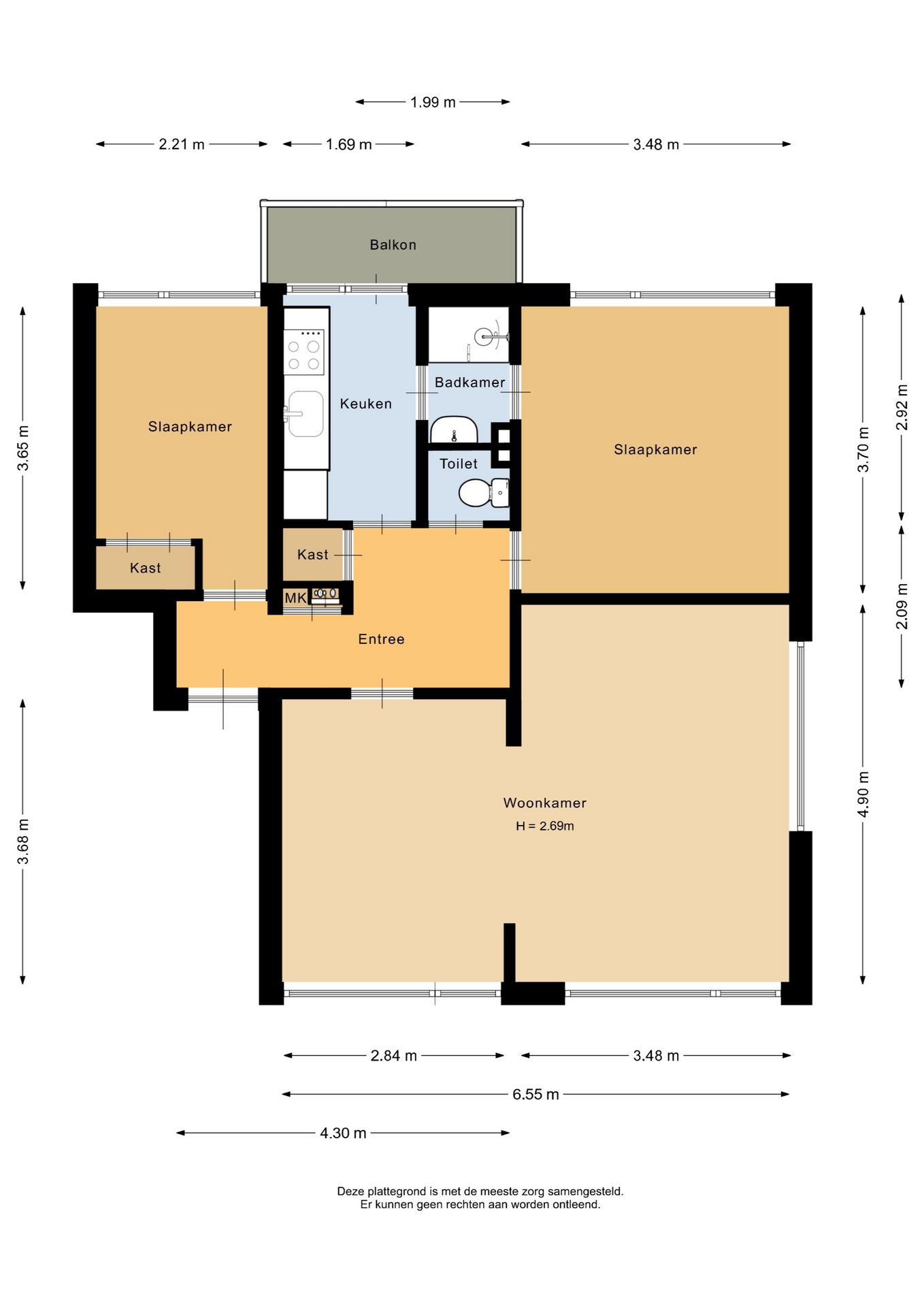 “Deze informatie is door ons met de nodige zorgvuldigheid samengesteld. Onzerzijds wordt echter geen enkele aansprakelijkheid aanvaard voor enige onvolledigheid, onjuistheid of anderszins, dan wel de gevolgen daarvan. Alle opgegeven maten en oppervlakten zijn indicatief.”