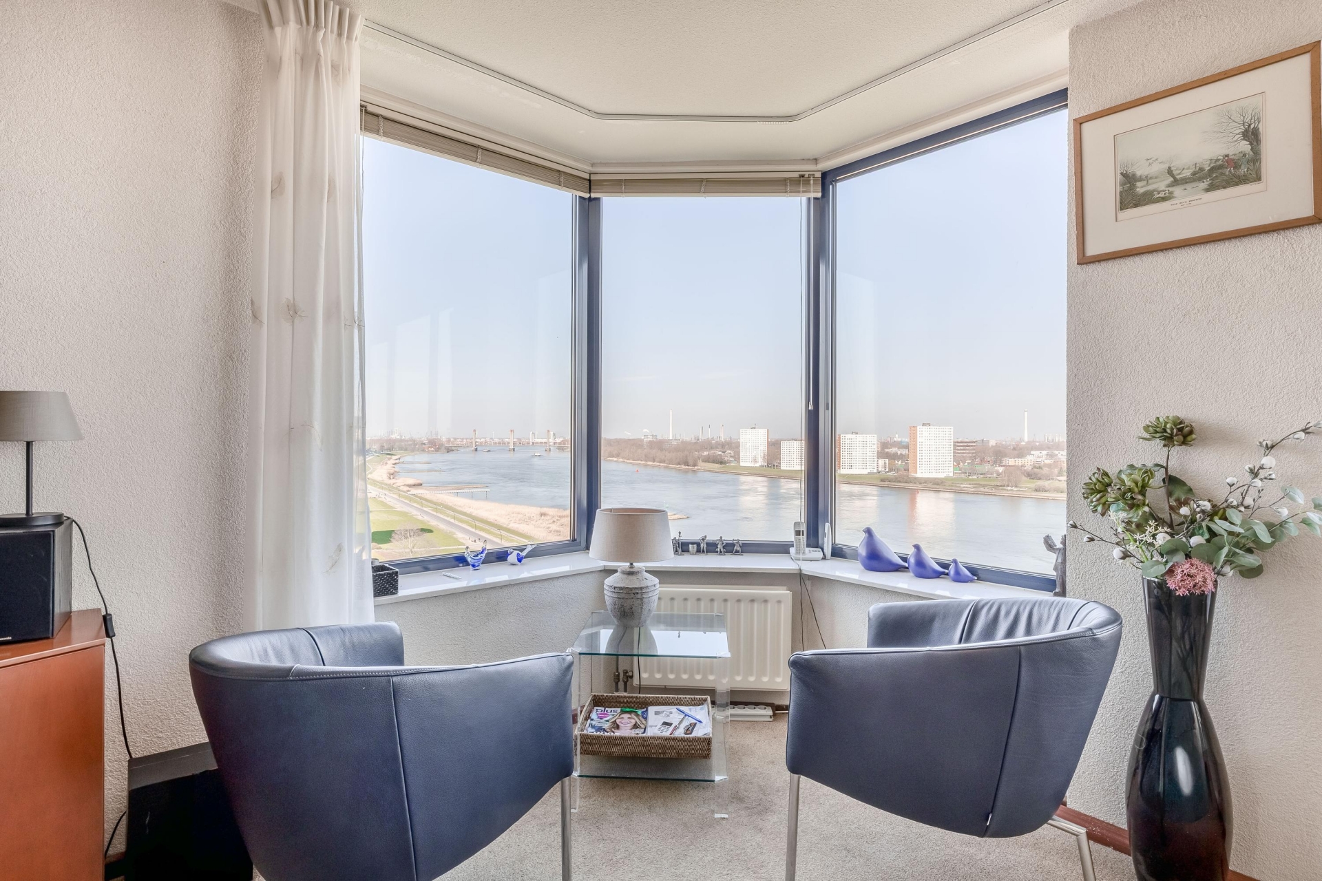 Zodra je binnenkomt, valt het meteen op: de ruimte en het licht. De woonkamer is royaal opgezet en biedt meer dan genoeg plek voor een comfortabele zithoek en een grote eettafel. Dankzij de grote raampartijen en de ligging op de 13e verdieping geniet je hier van een prachtig, vrij uitzicht over de rivier en de omgeving.