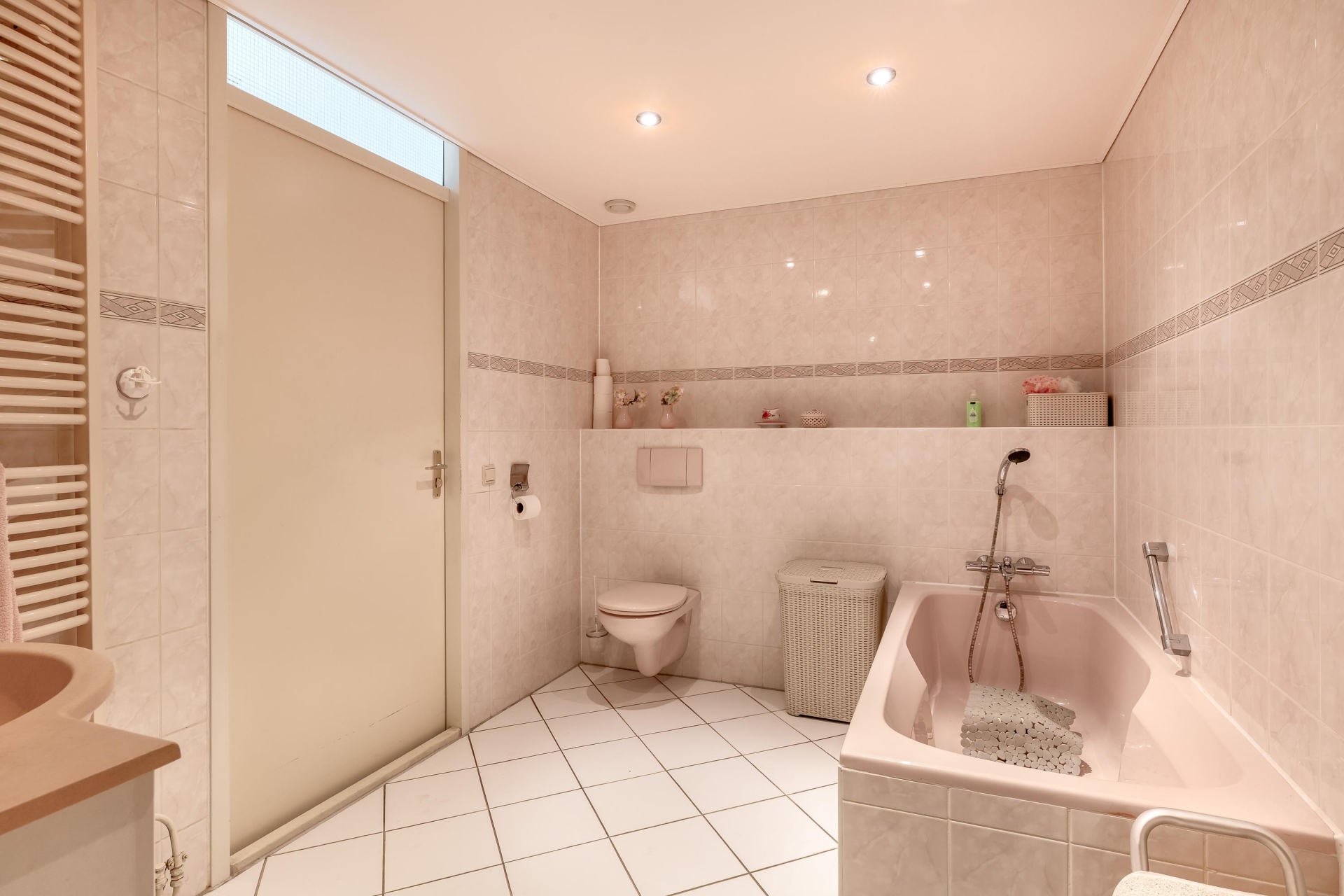 De badkamer is compleet uitgevoerd met een ligbad, douche en wastafel. Daarnaast is er een separaat toilet, wat prettig is voor gasten. Extra praktisch is de aparte berg-/wasruimte in het appartement.