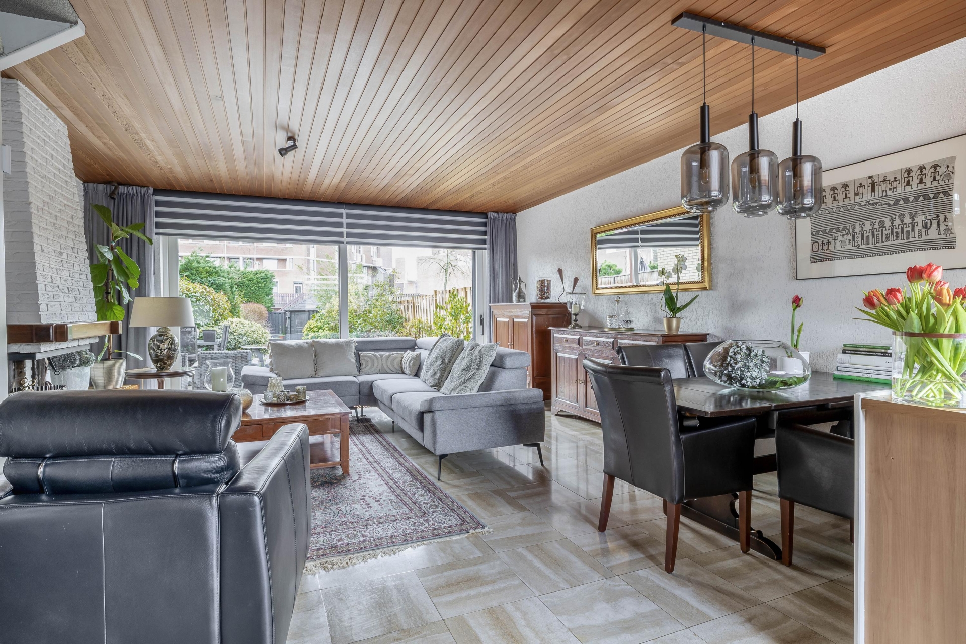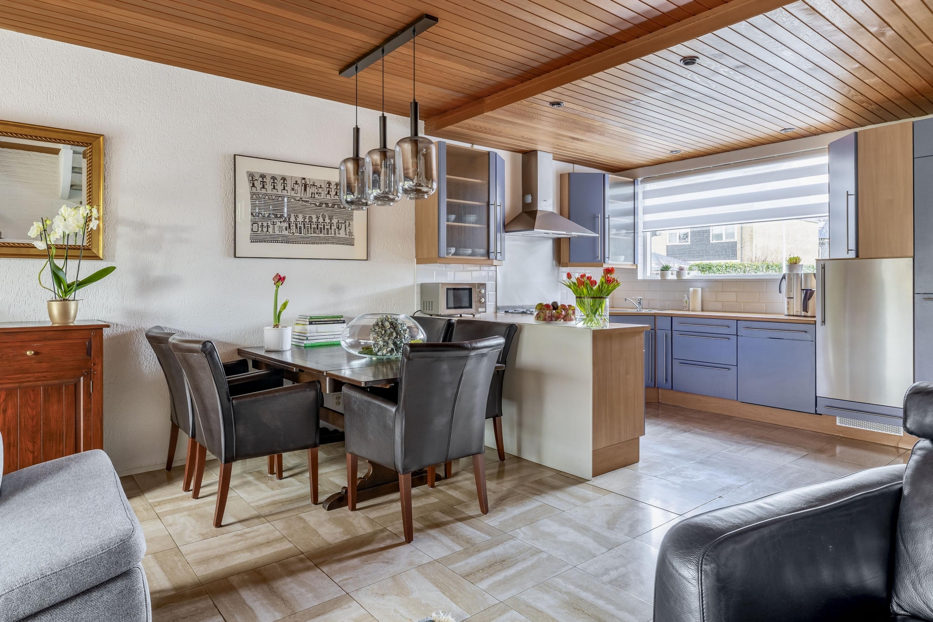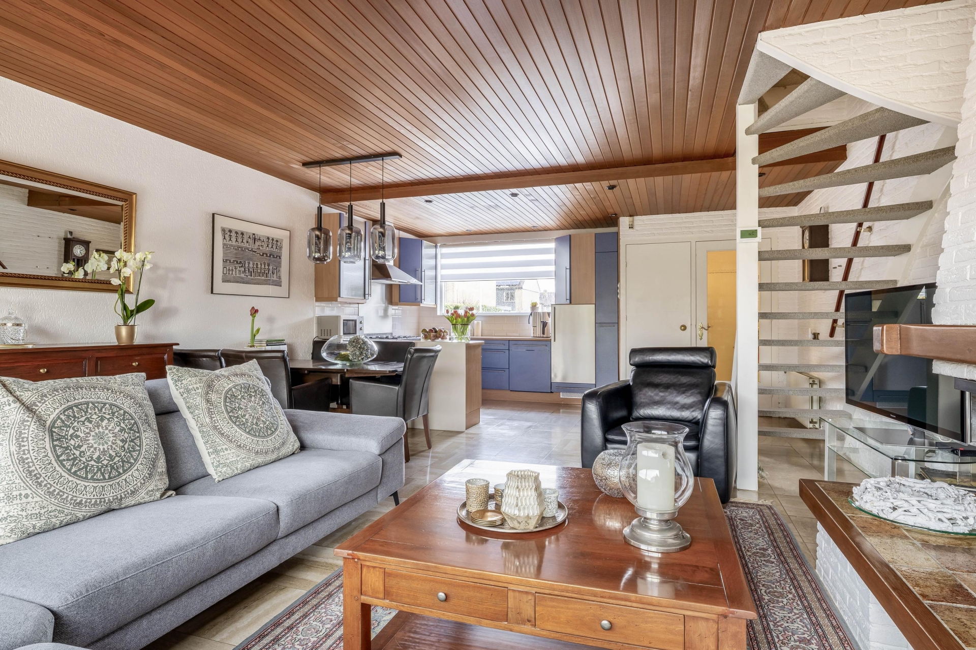 Met een woonoppervlakte van maar liefst 129 m² en drie (voorheen 4) slaapkamers is er ruimte genoeg voor het hele gezin. En er zijn, met name op de tweede verdieping nog volop uitbreidingsmogelijkheden voor wellicht toch nog een extra slaapkamer. De woonkamer is royaal en het gevoel van ruimte wordt versterkt door het plafond van Meranti hout. Speciaal geïmporteerd uit Canada om te kunnen werken met hele lengtes.
