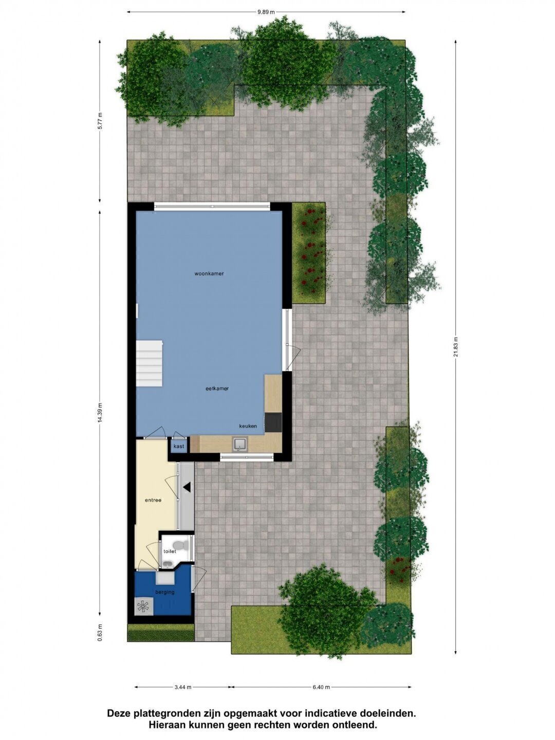 “Deze informatie is door ons met de nodige zorgvuldigheid samengesteld. Onzerzijds wordt echter geen enkele aansprakelijkheid aanvaard voor enige onvolledigheid, onjuistheid of anderszins, dan wel de gevolgen daarvan. Alle opgegeven maten en oppervlakten zijn indicatief.”