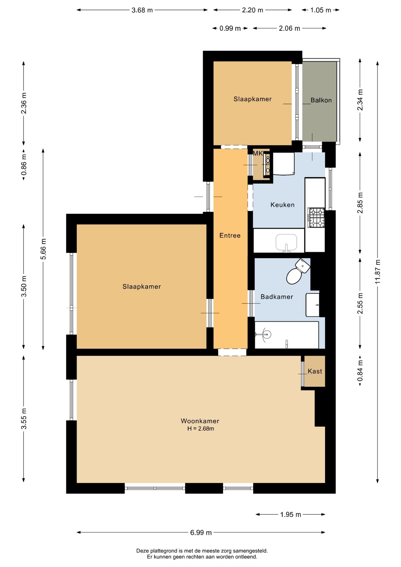 “Deze informatie is door ons met de nodige zorgvuldigheid samengesteld. Onzerzijds wordt echter geen enkele aansprakelijkheid aanvaard voor enige onvolledigheid, onjuistheid of anderszins, dan wel de gevolgen daarvan. Alle opgegeven maten en oppervlakten zijn indicatief.”