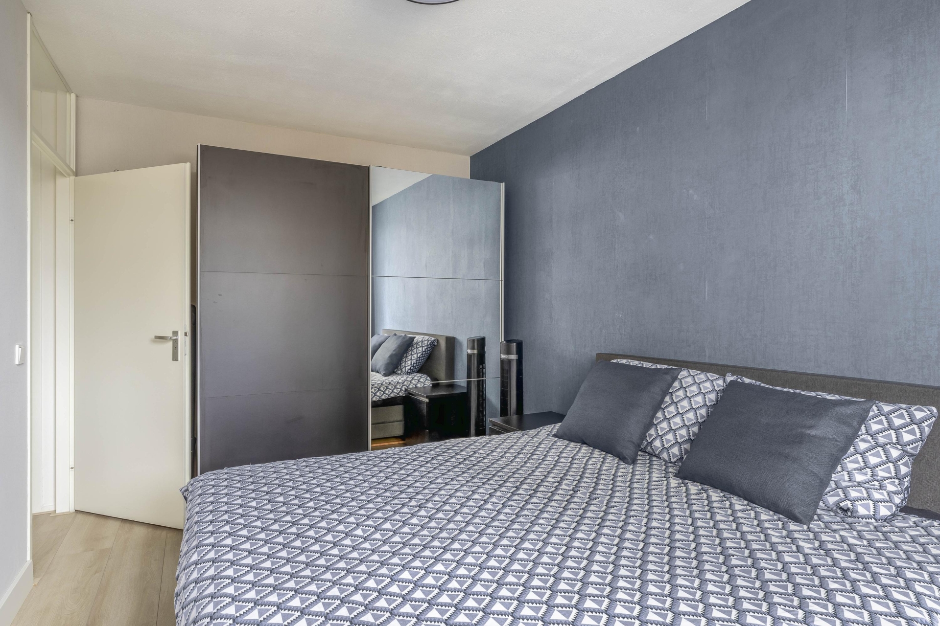 Aan de achterzijde ligt de ruime en lichte woonkamer. Vanuit hier bereikt u het balkon, waar u vrij uitzicht heeft over de wijk.