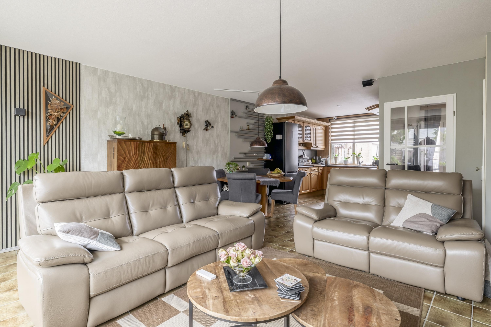 De woonkamer is tuingericht en dankzij de grote raampartij is het er de hele dag door heerlijk licht. De ruimte is praktisch in te delen met een ruime zithoek en aparte eethoek. Via de schuifpui loop je zo de achtertuin in – een fijne verlenging van je leefruimte.