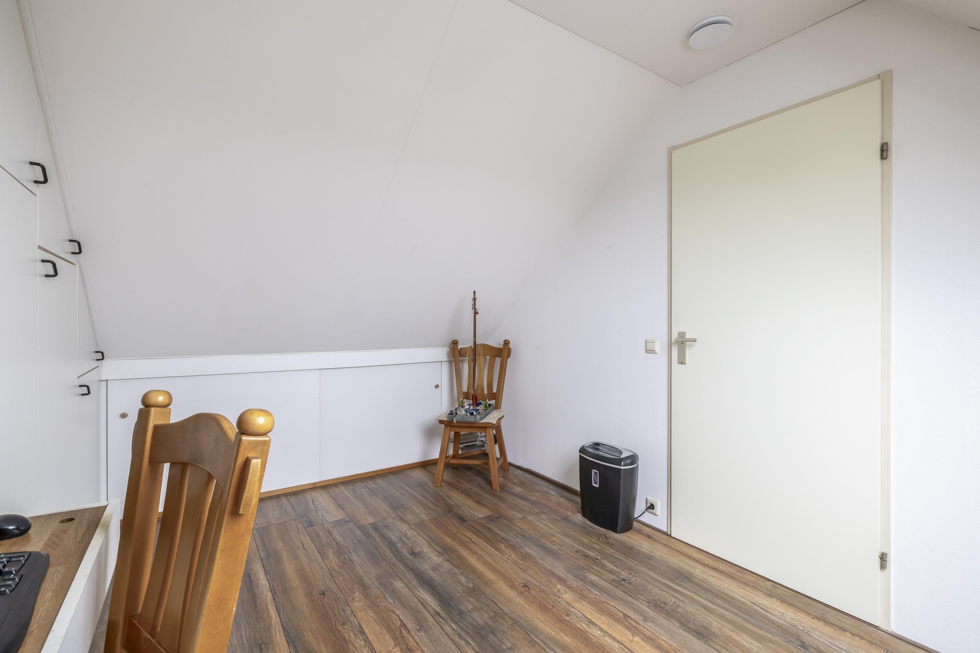 De zolderverdieping is in gebruik als vierde slaapkamer, voorzien van dakramen en extra bergruimte achter knieschotten. De ruime overloop is ingericht als wasruimte met opstelplaats voor de wasmachine, droger, cv-installatie én omvormer van de zonnepanelen. Ook hier ligt een nette vloer, wat de zolder tot een volwaardige verdieping maakt. Dankzij de vernieuwde meterkast (2023) en goede isolatie is dit huis technisch klaar voor de toekomst.