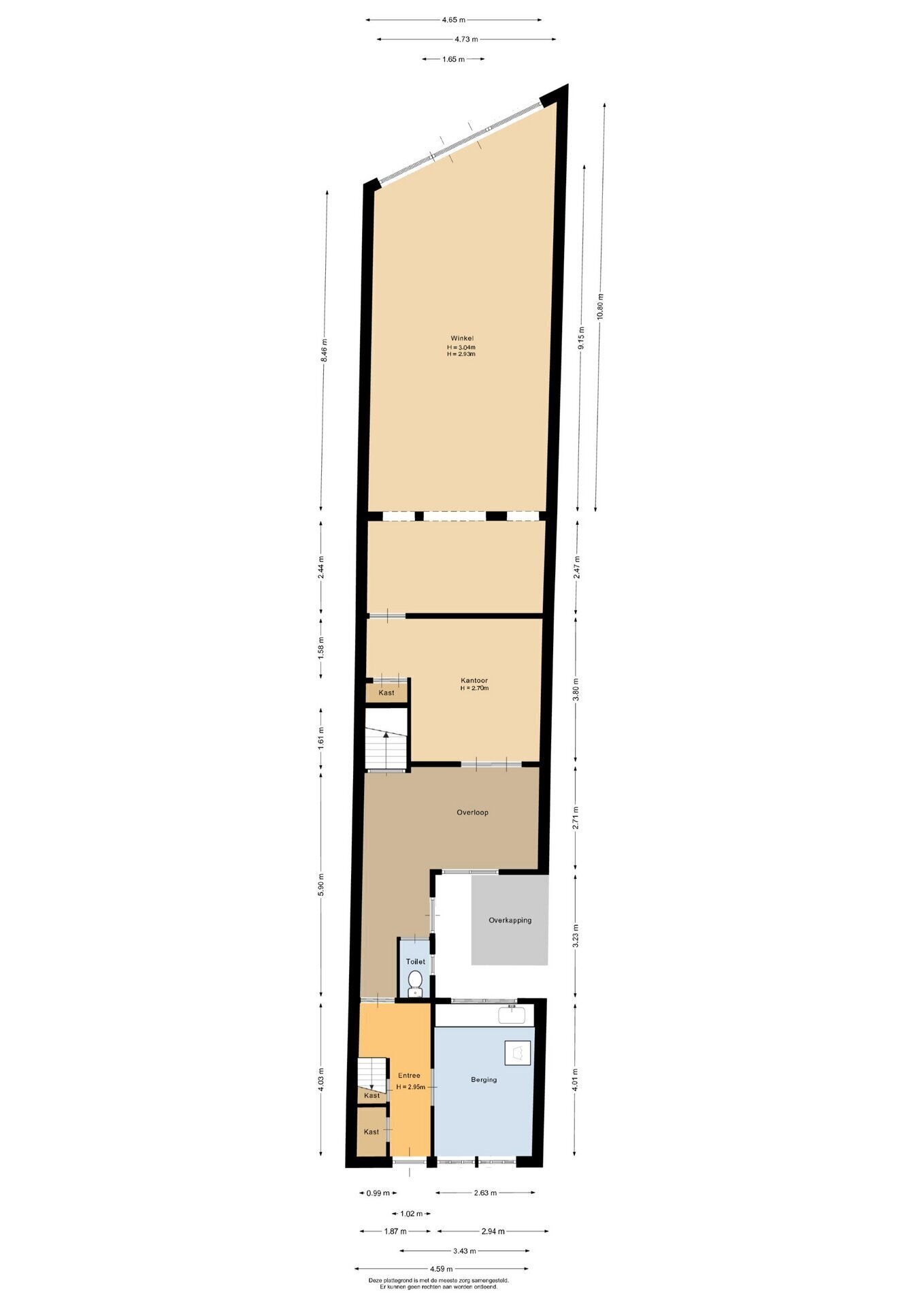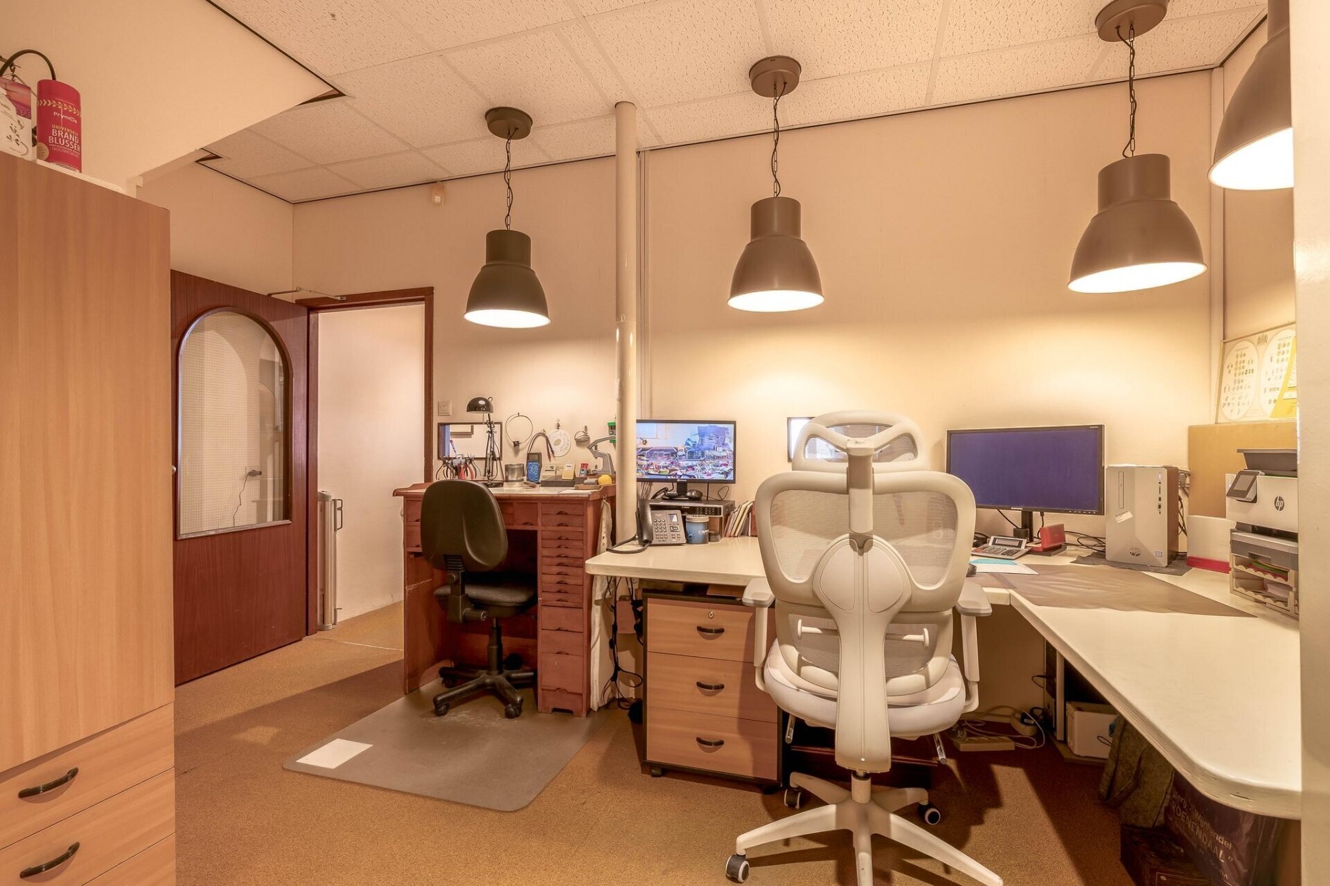 Winkelruimte aan de voorzijde met Kantoorruimte werkplaats, een tussenhal