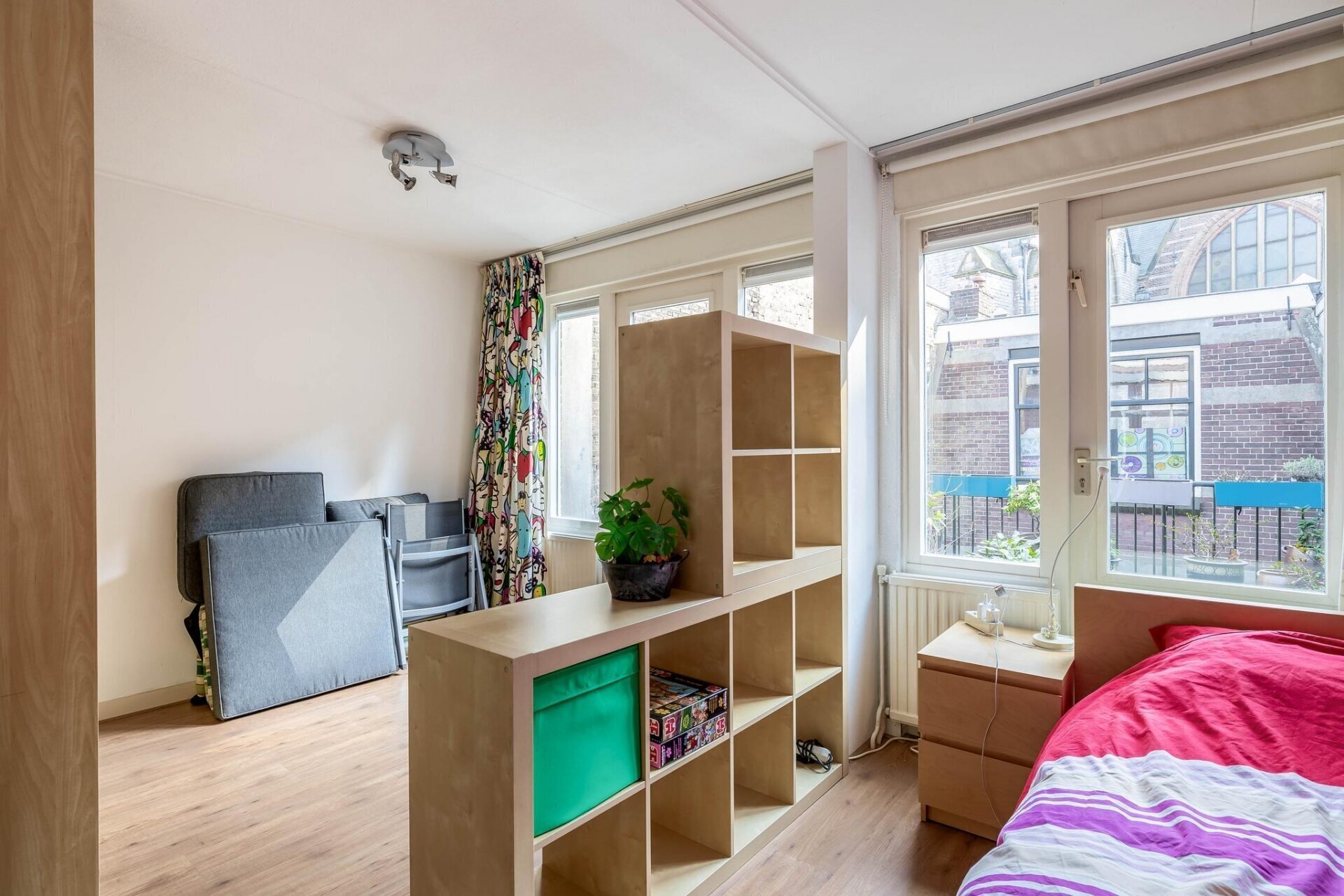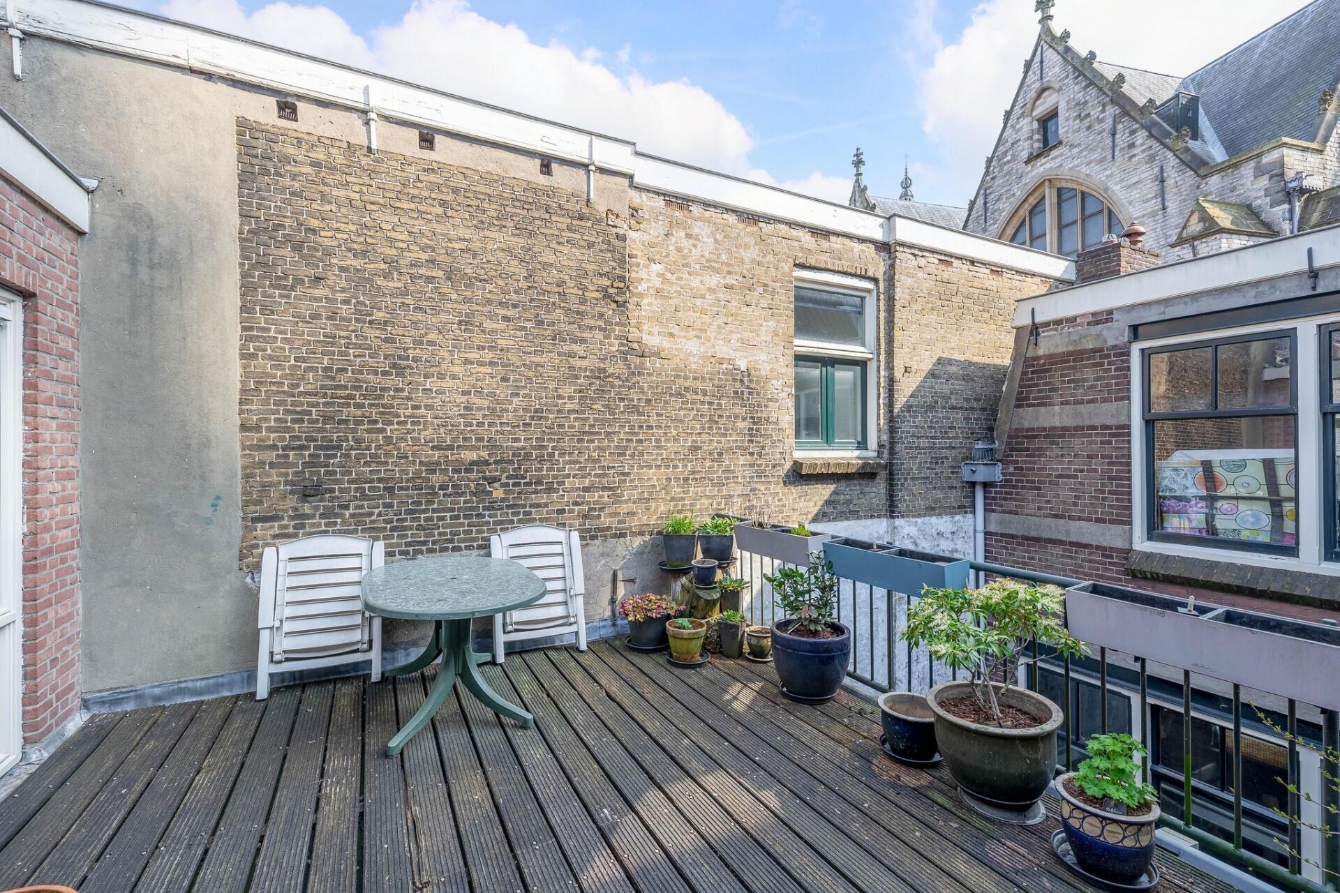 Bereikbaar via vaste trap. Atelierruimte met uitzicht op de Sint-Janskerk.