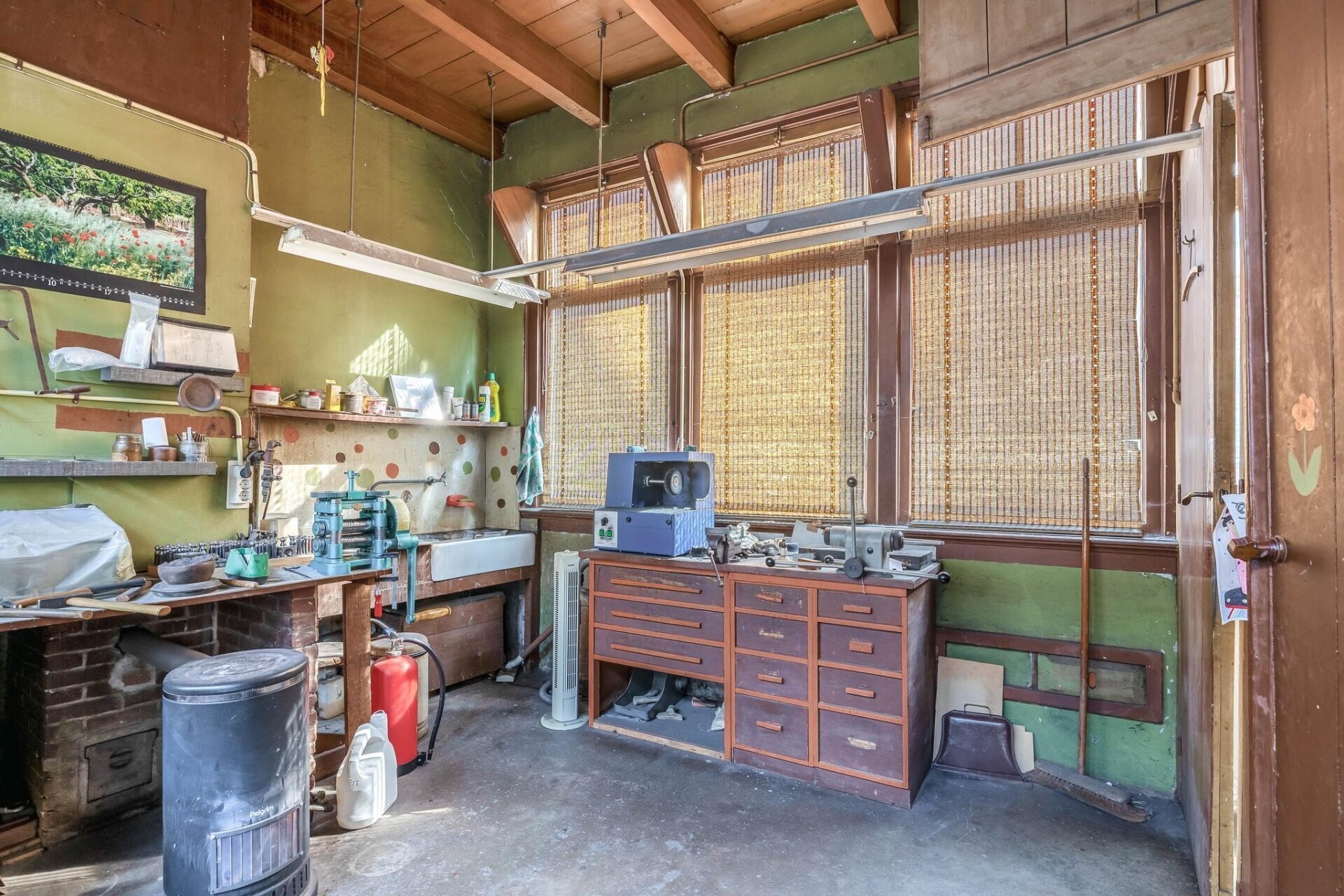 werkplaats . Er is een toilet aanwezig en een trapopgang naar het voorhuis.