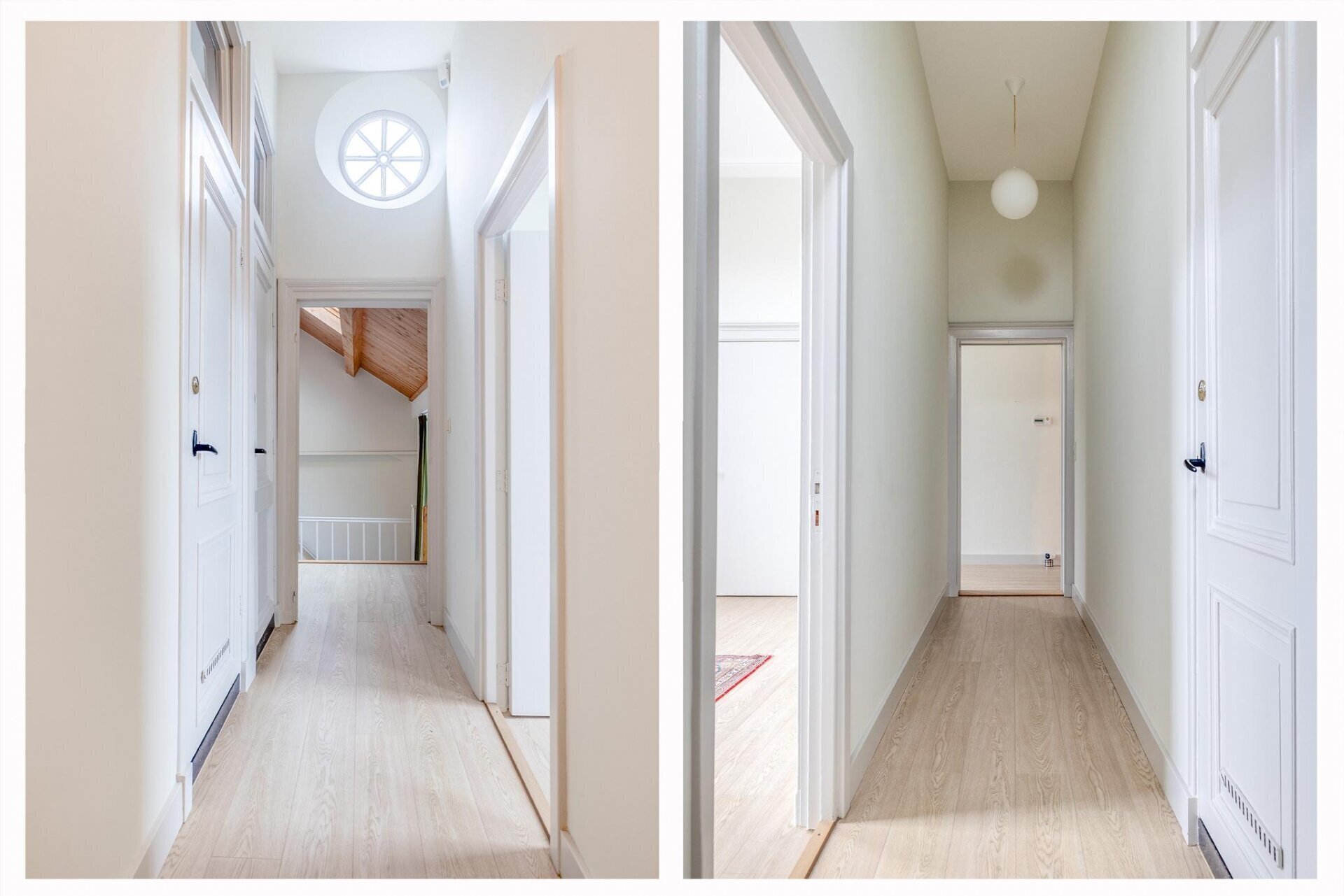 De vijf slaapkamers zijn ruim van opzet en elk met eigen karakter en voorzien van originele elementen zoals marmeren schoorstenen. De hoge plafonds en grote raampartijen zorgen voor een lichte en ruimtelijke sfeer. De badkamer is voorzien van een ruime inloopdouche, dubbel wastafelmeubel en een zwevend toilet.