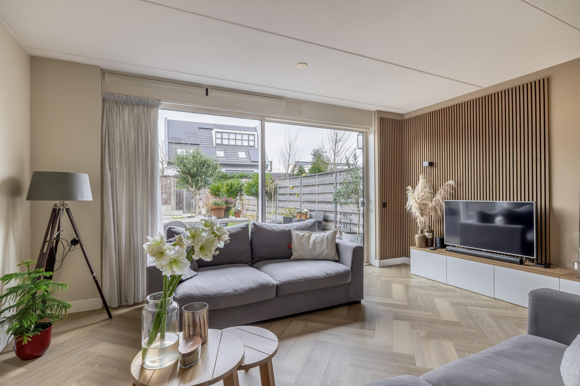 Via de nette voortuin stap je binnen in een sfeervolle en verrassend ruime woonkamer met een warme uitstraling. Dankzij de grote schuifpui aan de achterzijde valt het daglicht mooi naar binnen en heb je vrij zicht op het groen van de diepe achtertuin. De houtlook visgraat PVC vloer en de strakke wandafwerking geven de ruimte een luxe gevoel, terwijl de indeling praktisch en uitnodigend is. De woonkamer loopt naadloos over in het eetgedeelte, waar ruimte is voor een grote eettafel – perfect voor gezellige avonden met vrienden of familie.
