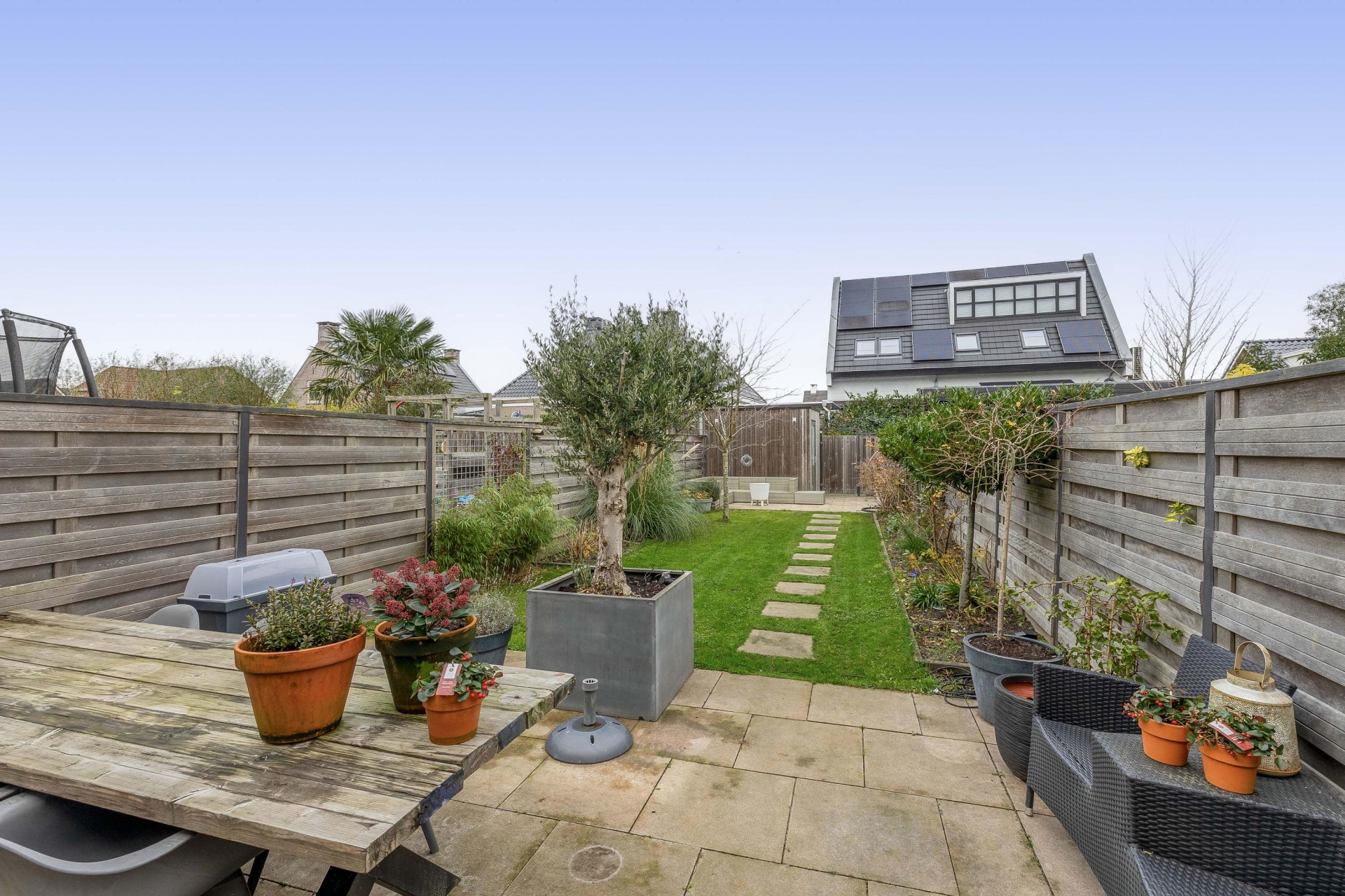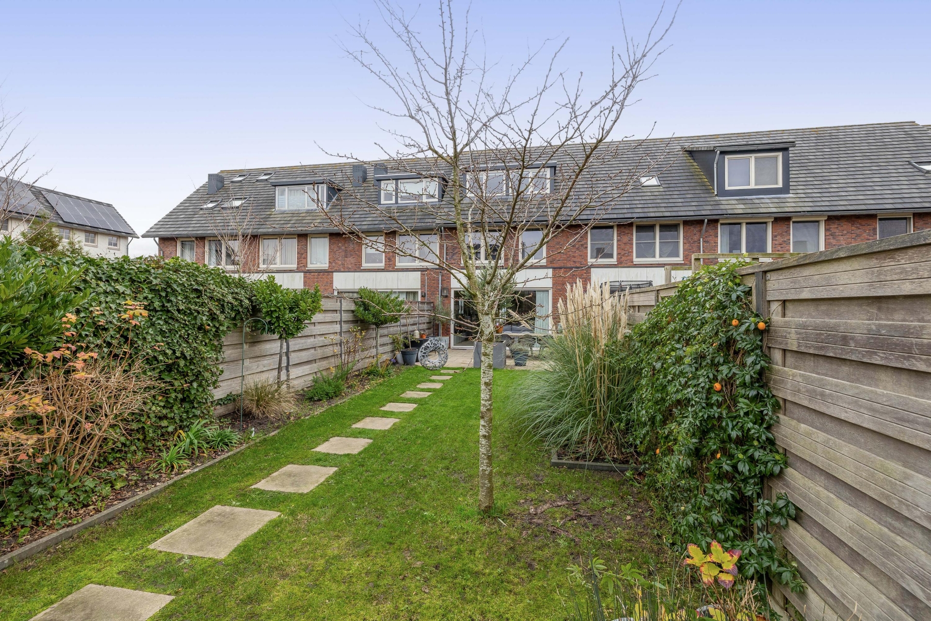 Wat deze woning echt bijzonder maakt, is de achtertuin van maar liefst 110 m². De tuin ligt op het noordwesten, maar dankzij de diepte is er altijd een plekje in de zon te vinden – vooral in de middag en avond. Er is een ruim terras direct achter het huis en een tweede zitplek achterin, perfect voor een loungeset of speelhoek. Groen, privacy en rust komen hier mooi samen. Achter in de tuin staat een vrijstaande houten berging, voorzien van elektra. Via de achterom bereik je gemakkelijk de brandgang en de openbare weg.